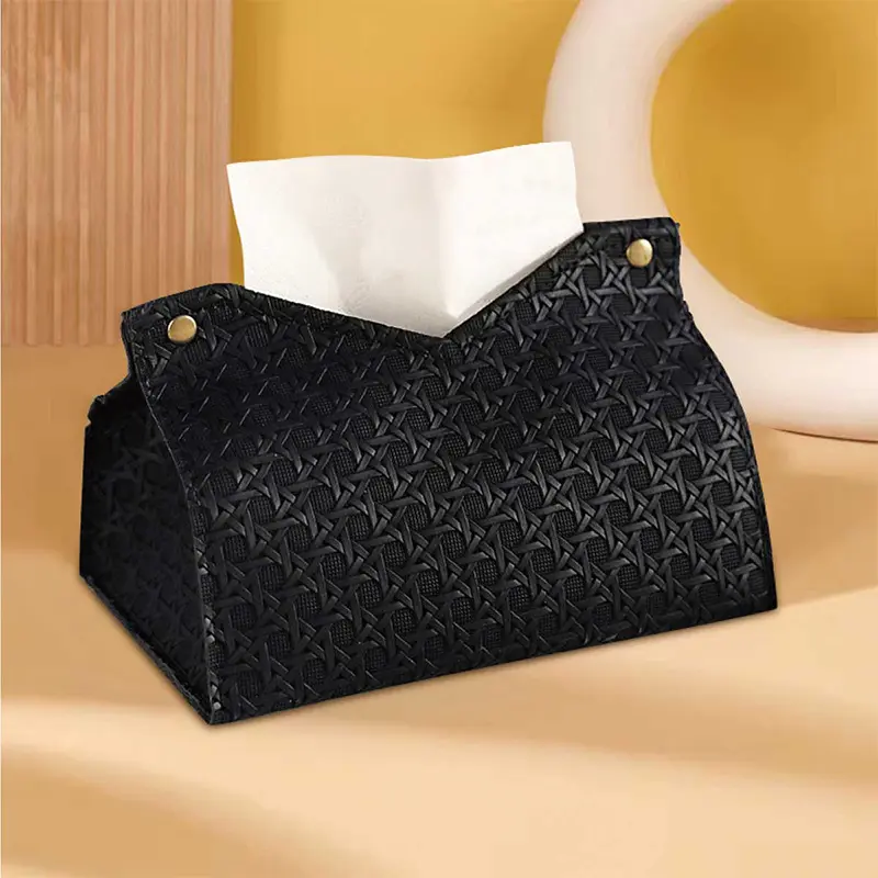 Light Luxury Rattan Pattern Faux Leather Tissue Box Cover