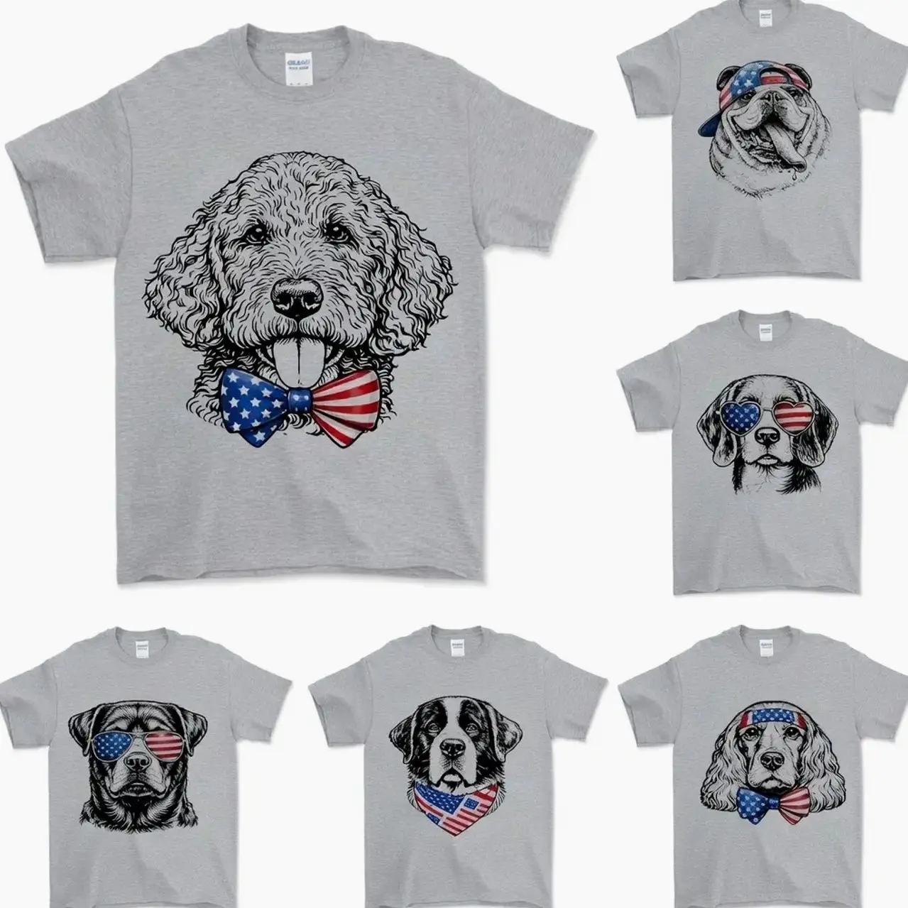Puppy Love Dog T- Shirt showcasing 50 dog breeds in 4th of July Graphic, Sport Grey, Cute Puppy Independence Day Shirt for Dog Lovers, printed on a cozy Gildan unisex T Shirt for pet loversPuppy Love Dog T- Shirt showcasing 50 dog breeds in 4th of July Graphic, Sport Grey, Cute Puppy Independence Day Shirt for Dog Lovers, printed on a cozy Gildan unisex T Shirt for pet lovers