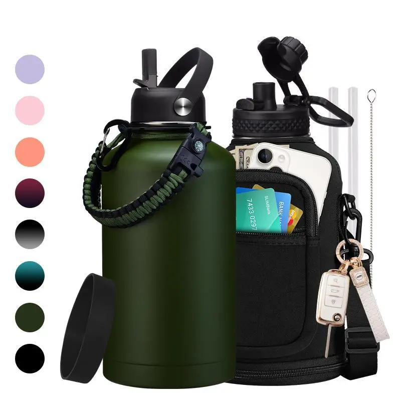 32/40/64/128oz Stainless Steel Insulated Water Bottle, Half Gallon Vacuum Flask Water Bottle - Big Water Jug with Straw & Spout Lid, Paracord Handle, Carrier Bag