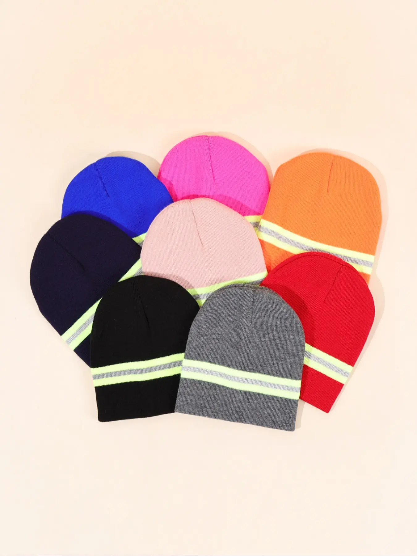 Cold Weather Beanie with Reflective Strips, Fitted Stripe Design for Men & Women, Ideal for Running Hiking Cycling, Fall/winter Essential