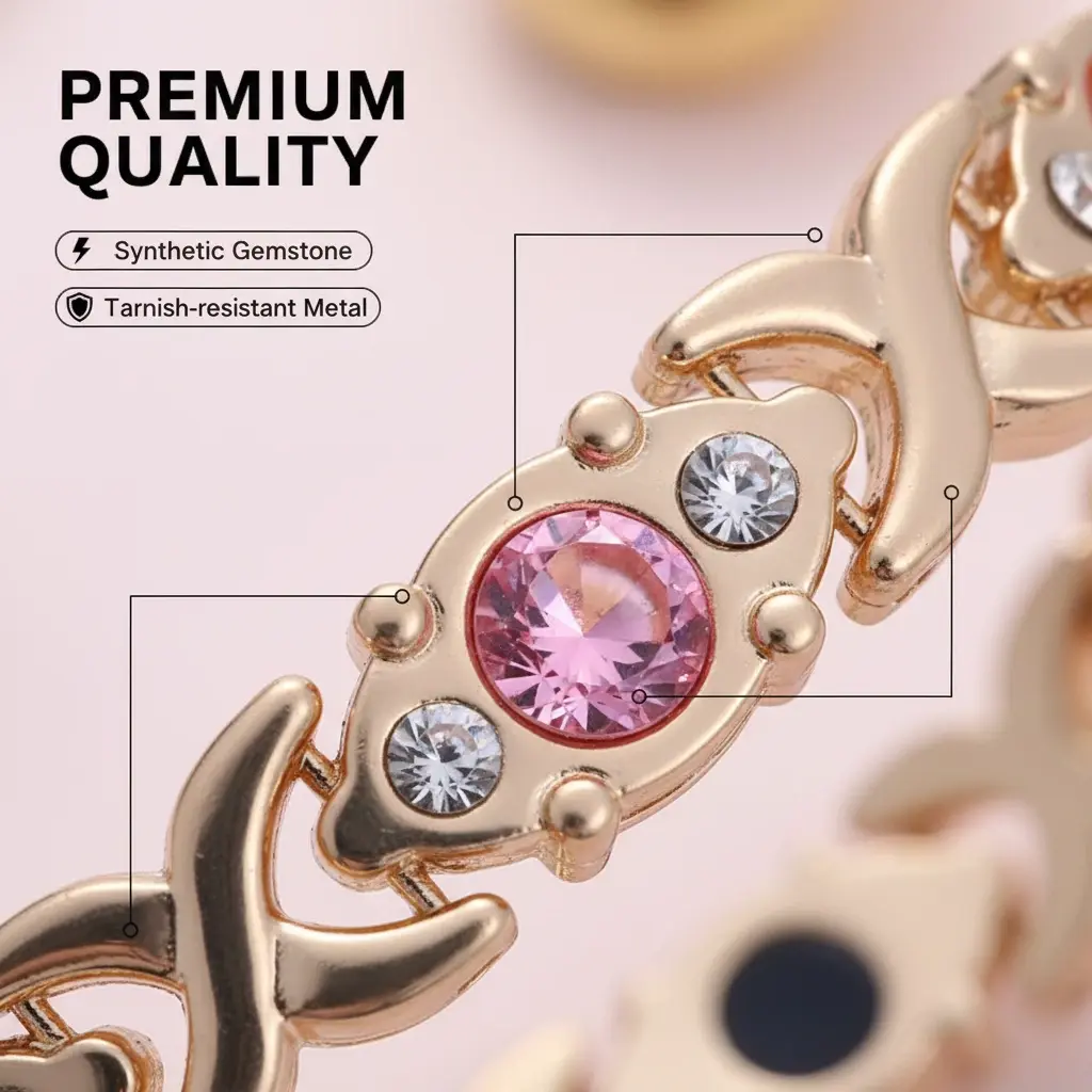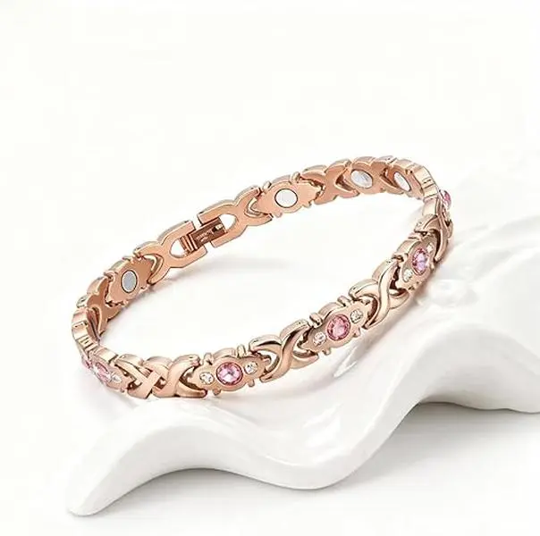 This magnetic alloy bracelet is a perfect blend of eco-friendliness and fashion. Crafted from alloy, it features sparkling rhinestones that add a touch of glamour. Ideal for women who love modern, trendy jewelry. The adjustable design ensures a comfortable fit for all wrist sizes.