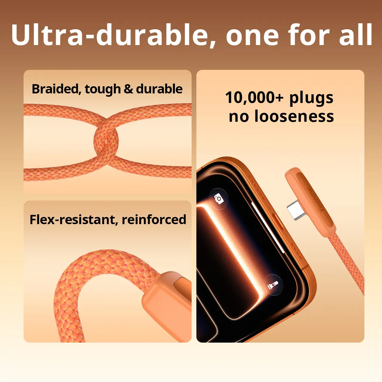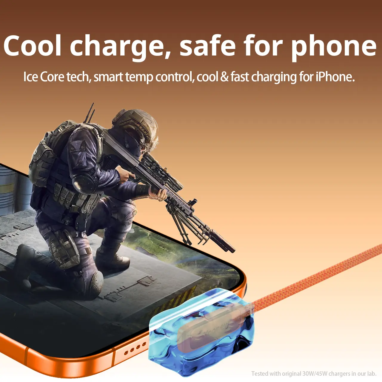 45W ultra-fast charging gaming cable—doesn’t obstruct hands while gaming; compatible with Apple 15/16/17 data cables; suitable for convenient office chargers and convenient iPhone tablets chargers; available in packs of 1, 2, or 3; lengths: 3.3 ft and 6.6 ft.