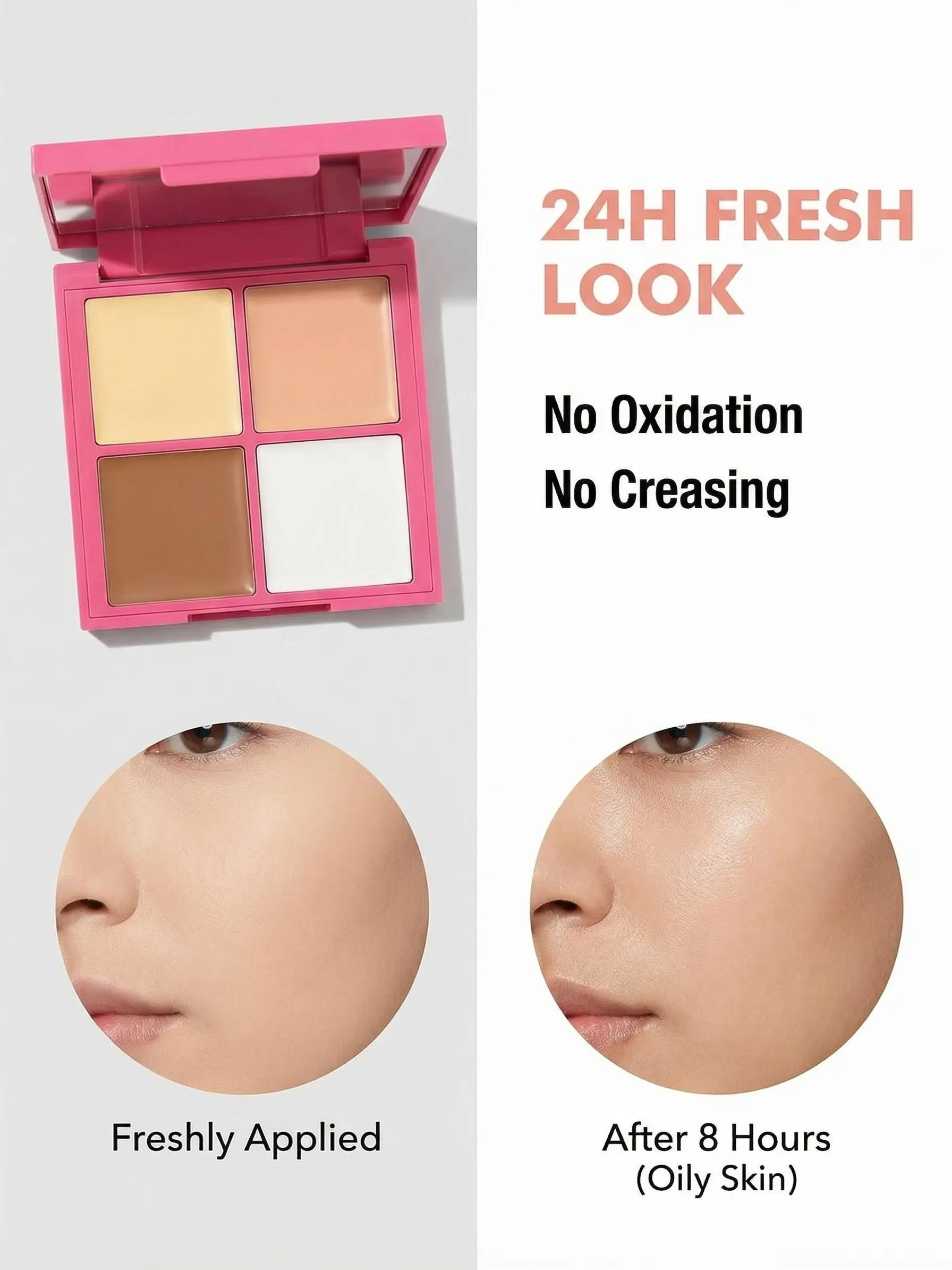 Contouring cream, a set of four-color contour palette, is used to correct skin tone. It can brighten the skin and define the facial contours, suitable for covering dark circles and blemishes, and also for concealing dull spots.