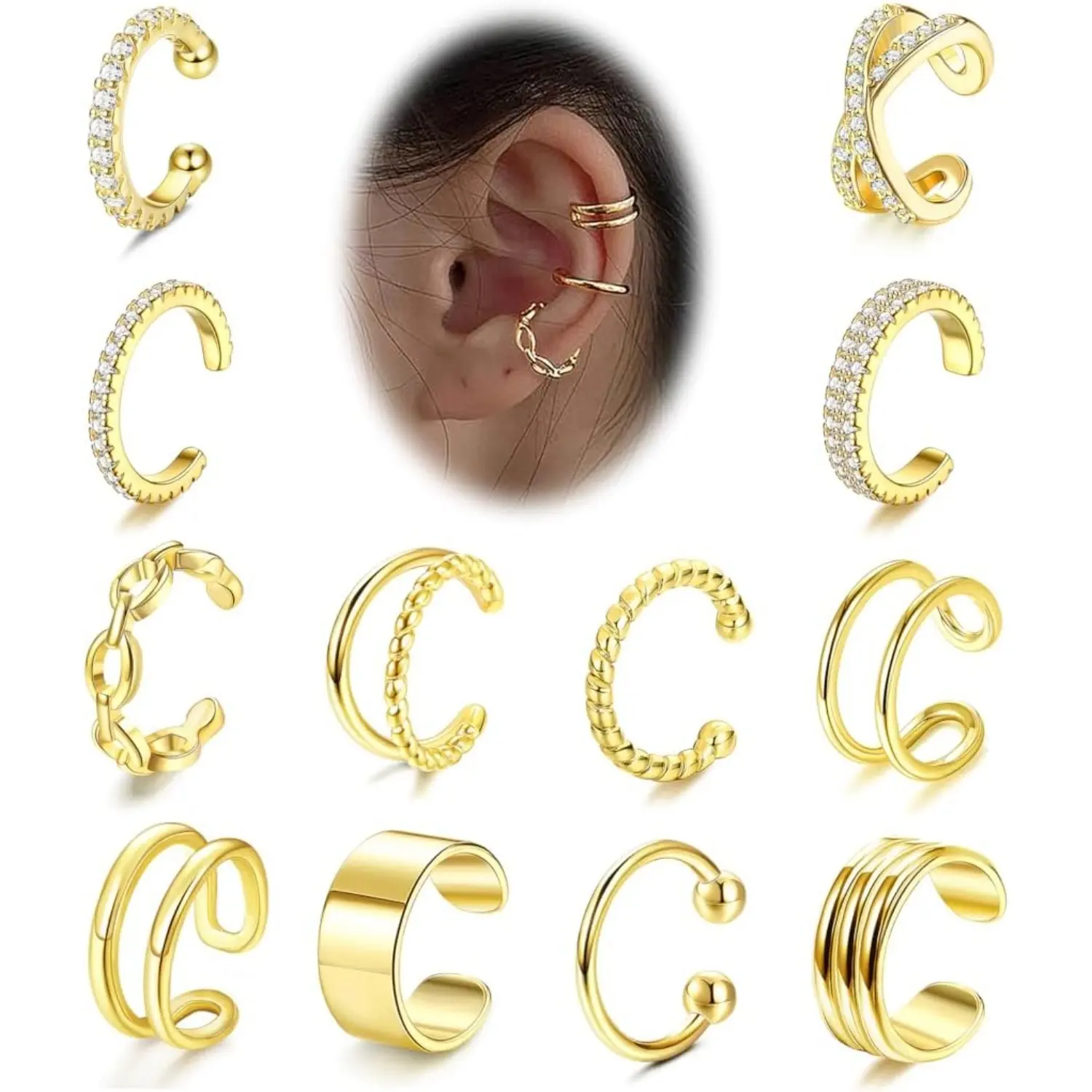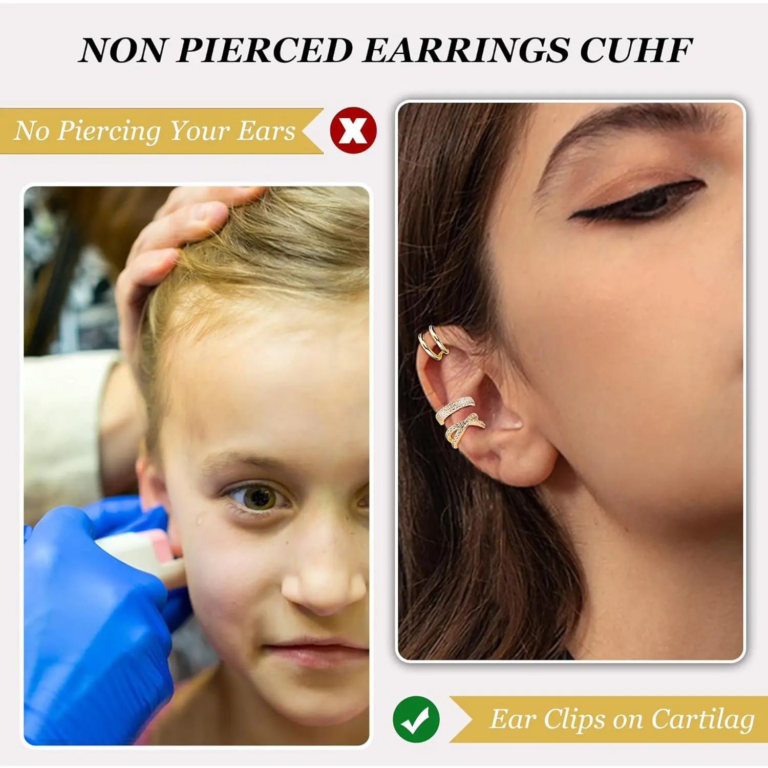 ·𝐄𝐱𝐪𝐮𝐢𝐬𝐢𝐭𝐞 𝐂𝐮𝐟𝐟 𝐄𝐚𝐫𝐫𝐢𝐧𝐠𝐬:You will receive a set of 12pcs gold/silver ear cuffs in different designs, including simple classic style cuff earrings and exquisite cubic zirconia cuff earrings to add sparkle to your daily outfits.