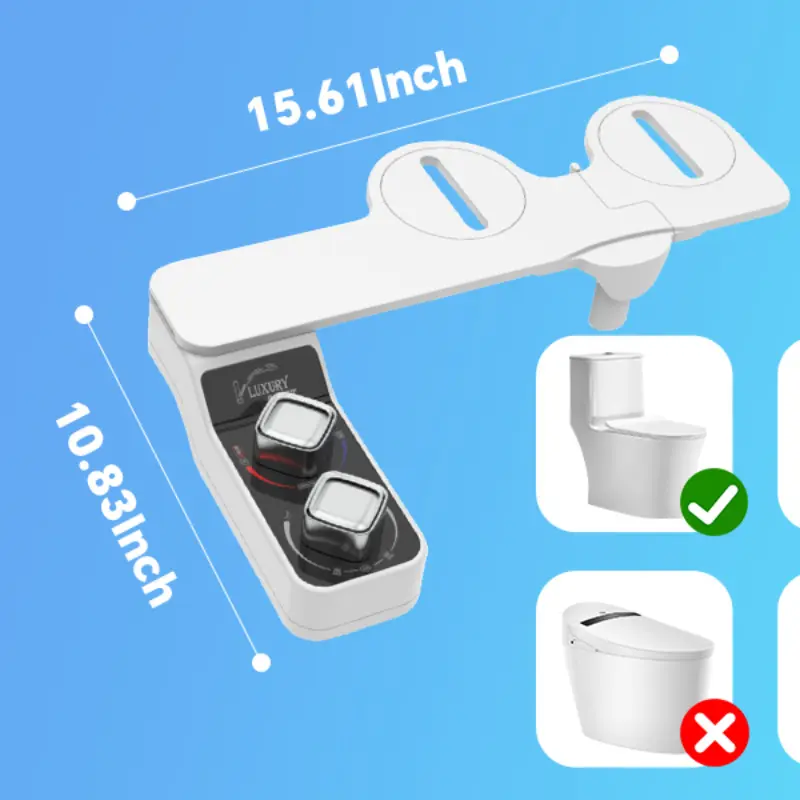 Bidet Attachment for Toilet, Hot and Cold Water, Non-Electric, Self Cleaning, Dual Nozzle, Adjustable Water Pressure, Phone Holder