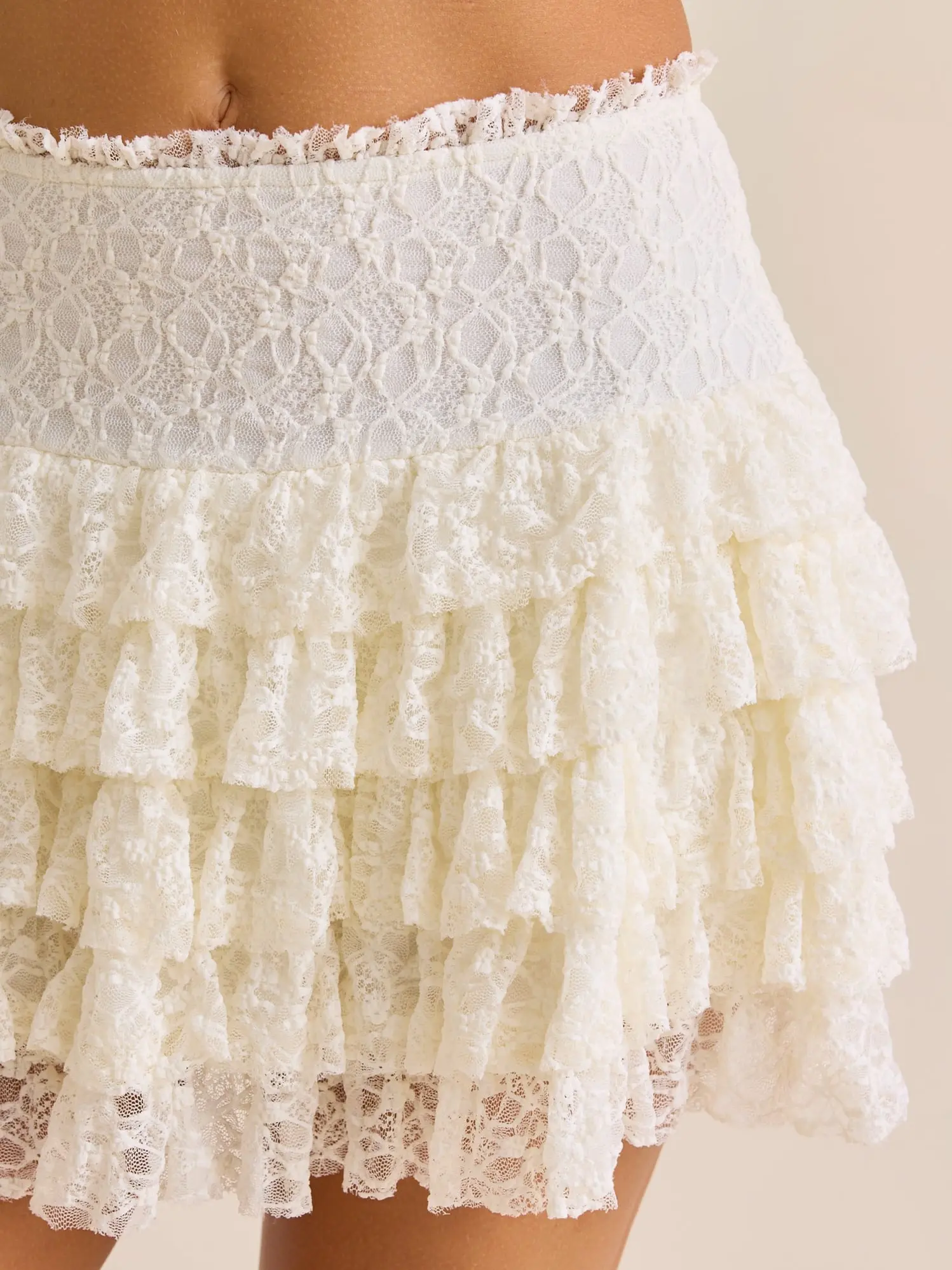 ·Key Features:Tiered lace designMini lengthElegant and versatile