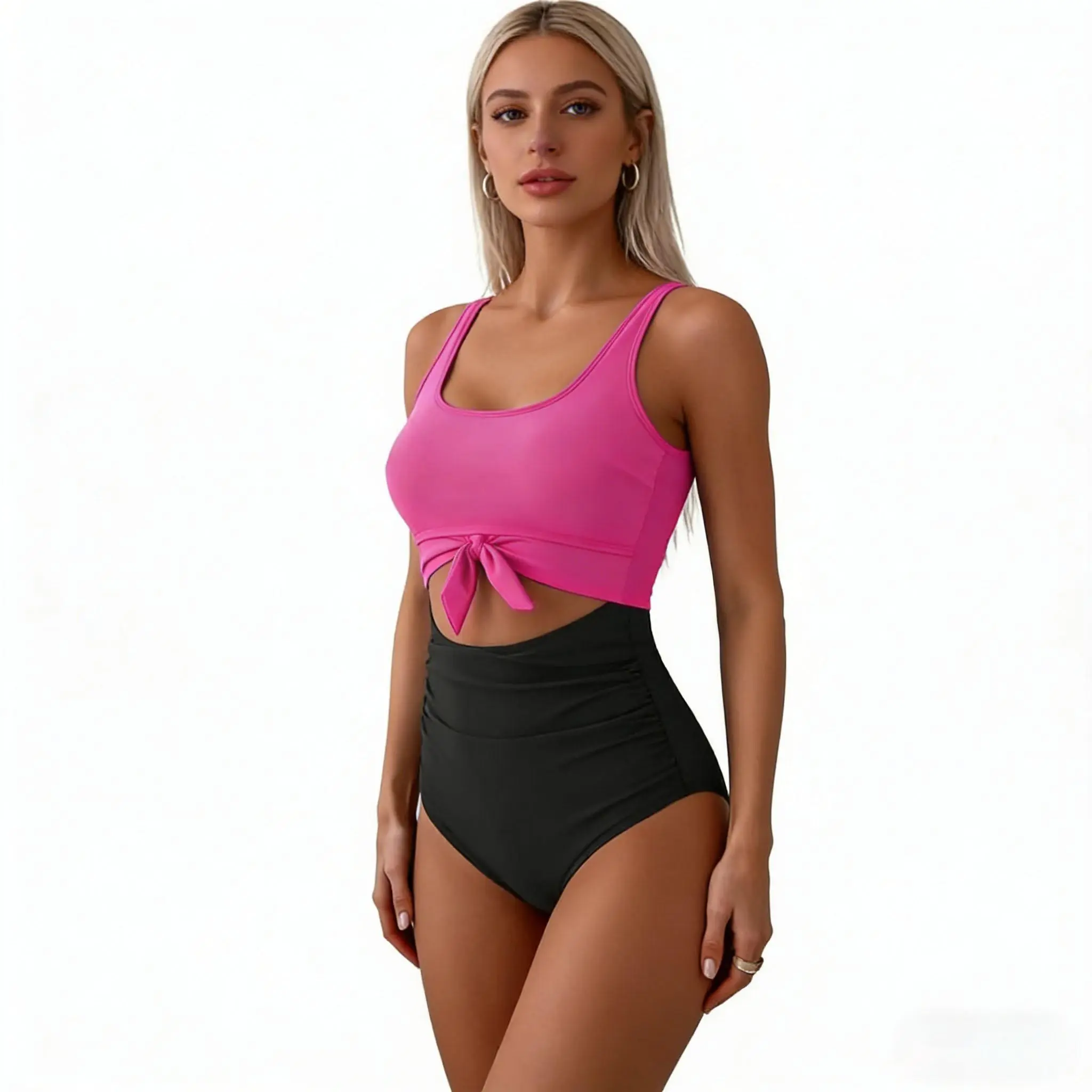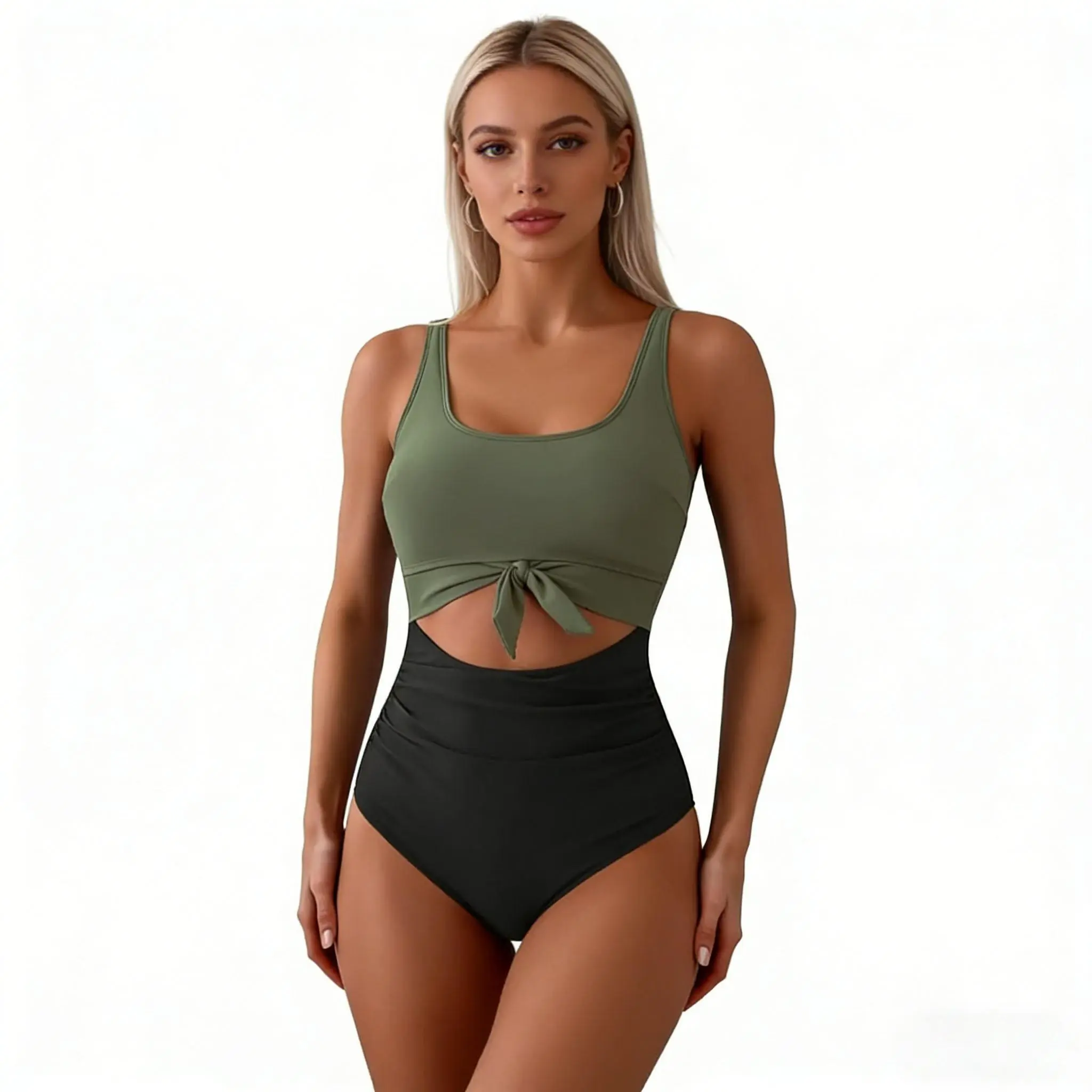 ·Cutout Tie Knot Design: This one-piece swimwear features a stylish cutout tie knot, adding a touch of elegance to your beachwear. 🌴
