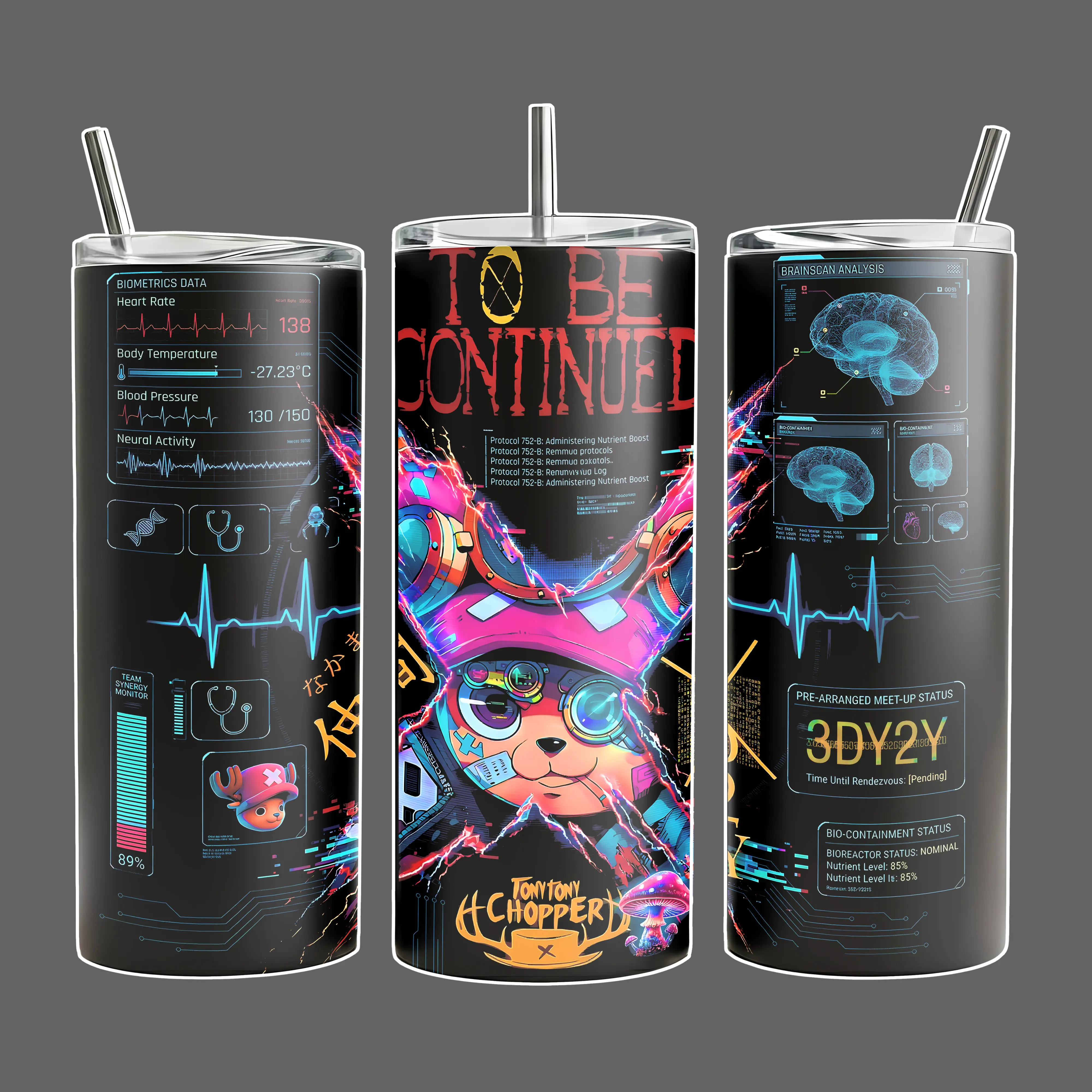 Chopper Cyberpunk Medical Scan - OPiece Stainless Steel Insulated Travel Tumbler With Handle Straw Lid 20oz 40oz Full Wrap Anime Tech Design