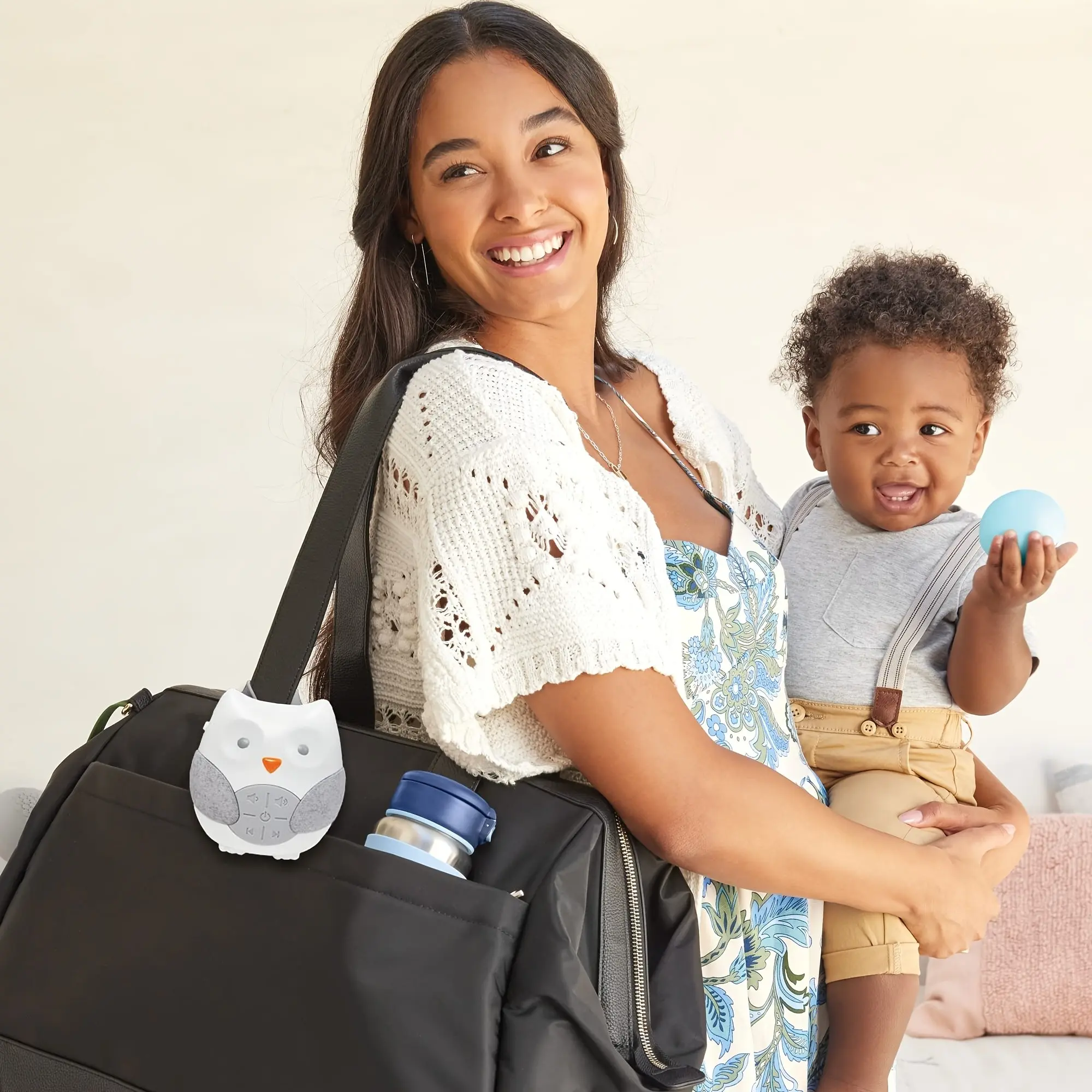 Cute Owl Baby White Noise Machine, Portable Sound Soother with 4 Soothing Sounds & Songs, Adjustable Strap, Auto-Off Timer, Perfect for On-the-Go, Stroller & Crib