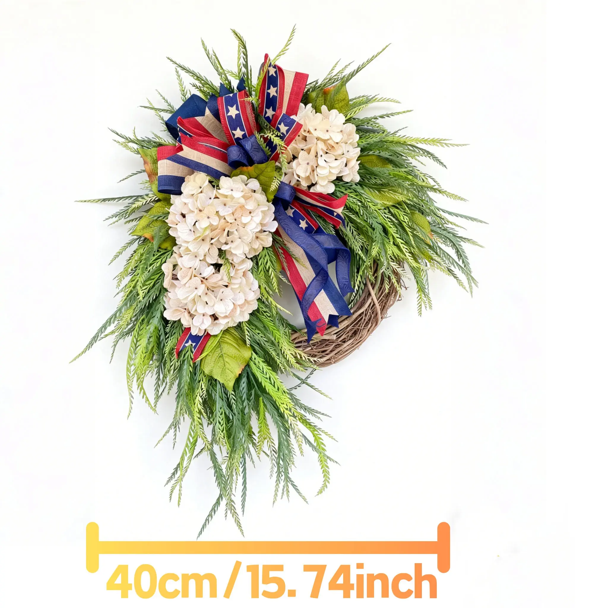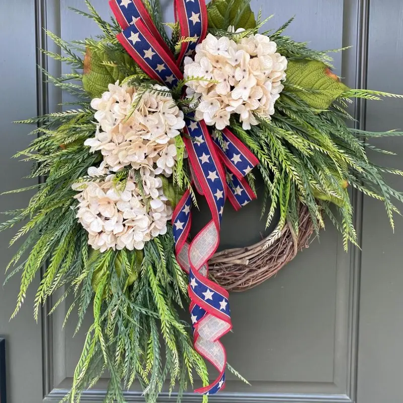 Independence Day Wreath Front Door Decoration, American Flag Bow Hydrangea Patriotic Wreath, Memorial Day Outdoor Porch Home Wall Decor