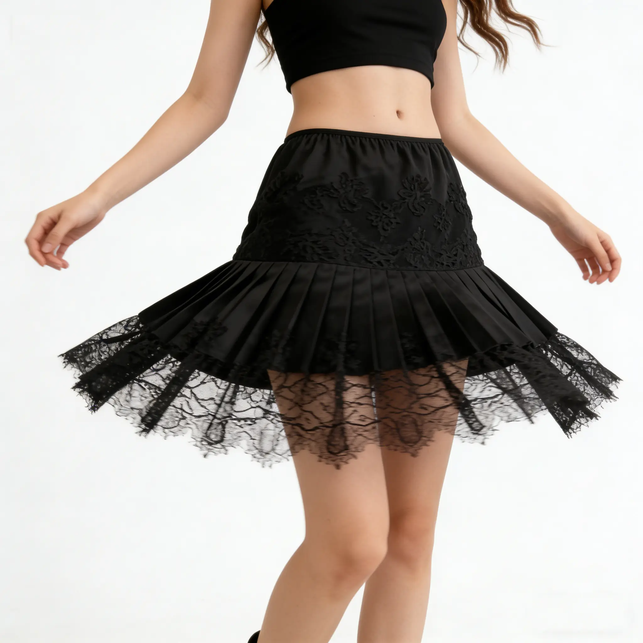Women's Lace Mini Skirts Casual Low Waist Solid Color Loose Fit Pleated Skirts Summer A-line Skirts