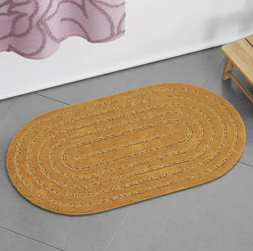 Refresh your bathroom with the Oval Bath Rug by Drew Barrymore, exclusively at Walmart. Elevate your bathroom decor with this luxurious 100% cotton bath rug, measuring 20" x 34". Crafted with precision through table tufting, this bath rug not only adds a touch of style to your bathroom but also offers comfort and durability. For easy care, simply machine wash it separately on a gentle cycle with mild detergent - no bleach needed. Tumble dry on low heat and trim any long yarn ends with scissors to maintain its pristine appearance. Plus, for added safety, we recommend using an anti-skid rug pad. Available in six different colors. Shop the entire Bath collection including towels, bath rugs and accessories on Walmart.com.