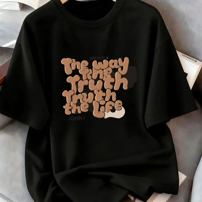 The Way Is The Truth Truth Is Life John 14:6 T-Shirt - Casual Crew Neck Pure Cotton Tee, Super Soft and Breathable for Summer, Spiritual Faith Gift for Skateboard Lovers, Urban Streetwear for Men Women Family Friends