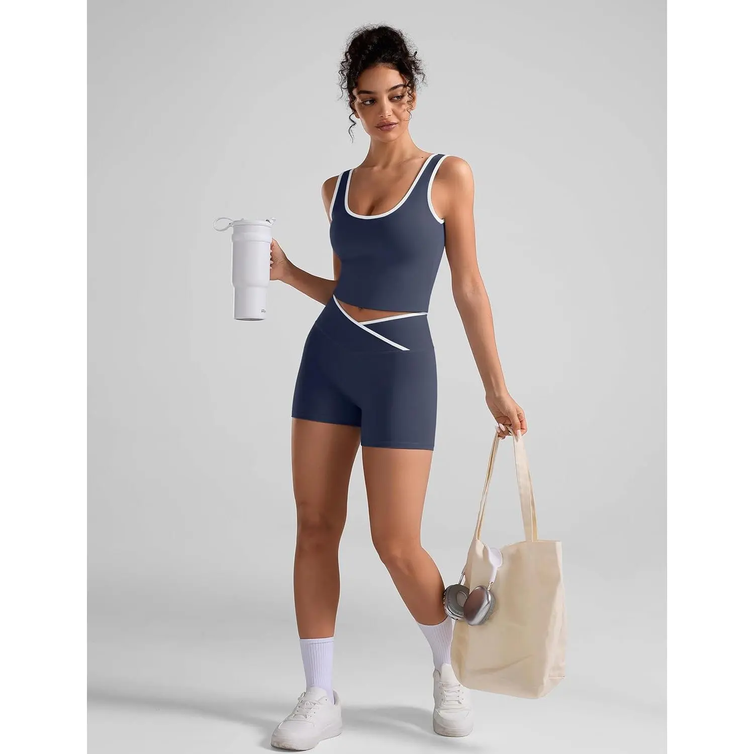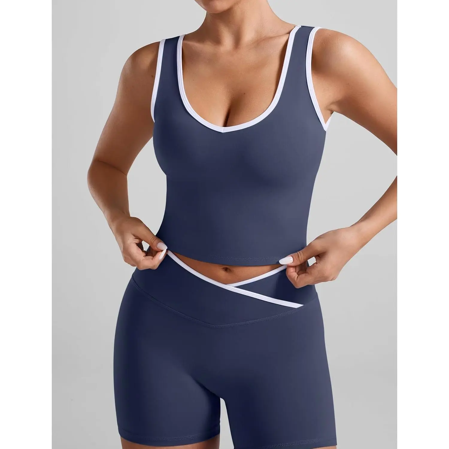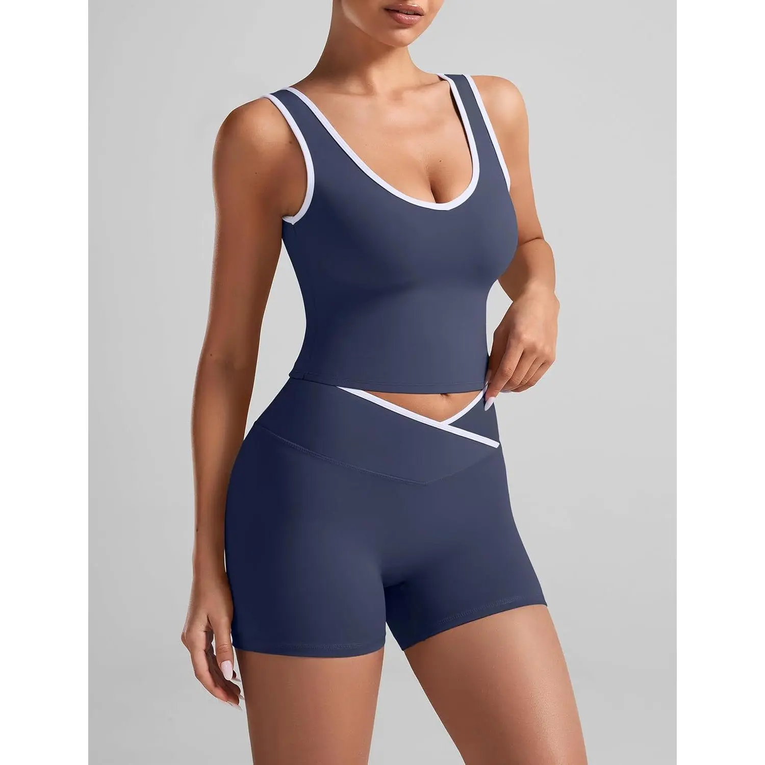Workout Sets for Women 2 Piece U Neck Crop Tank Top High Waisted Shorts Athletic Gym Yoga Outfits Activewear