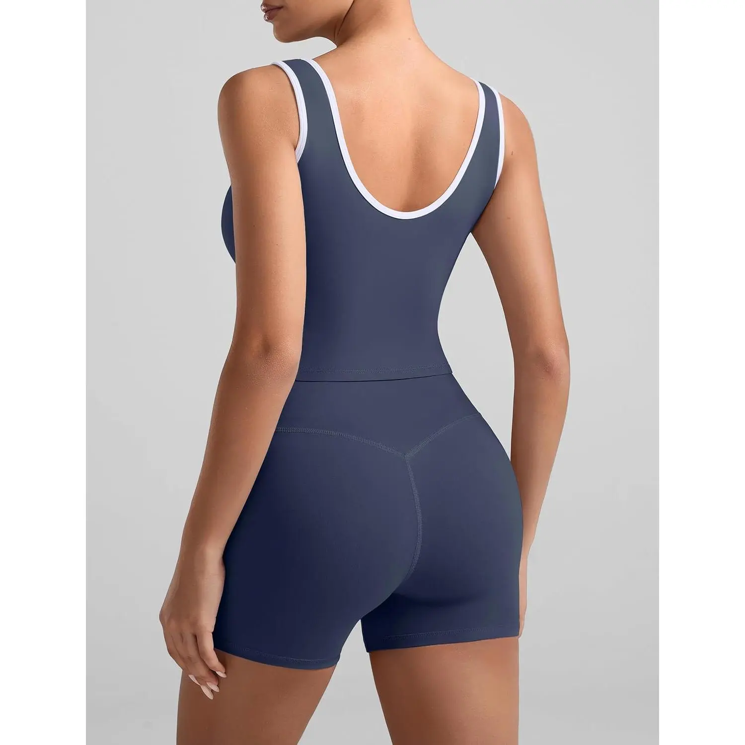 YEOREO One Piece Workout Jumpsuits for Women Backless Tummy Control Sleeveless Jumpsuits Lizvette V Back Scrunch Yoga Romper
