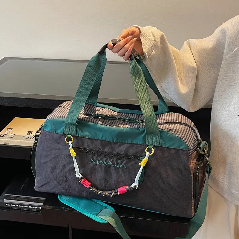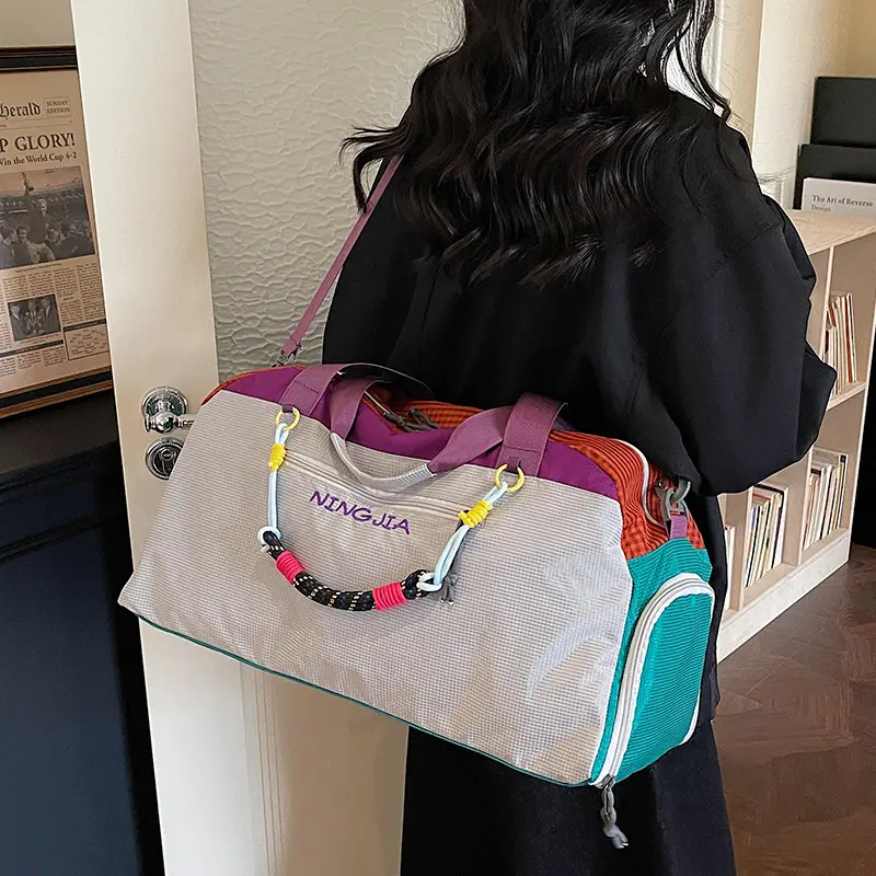 Color blocking splicing travel bag for women, large capacity handheld lightweight storage bag, sports yoga fitness bag, crossbody boarding bag