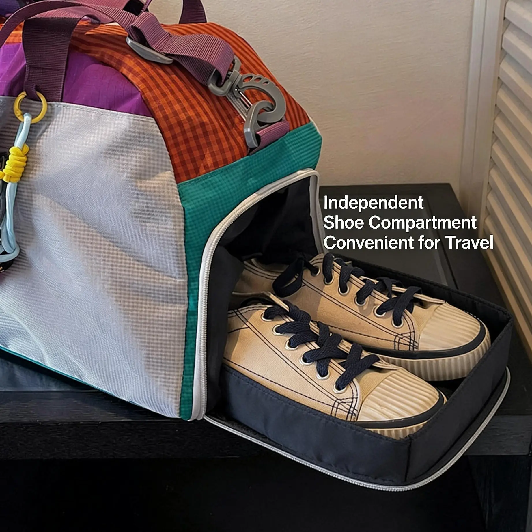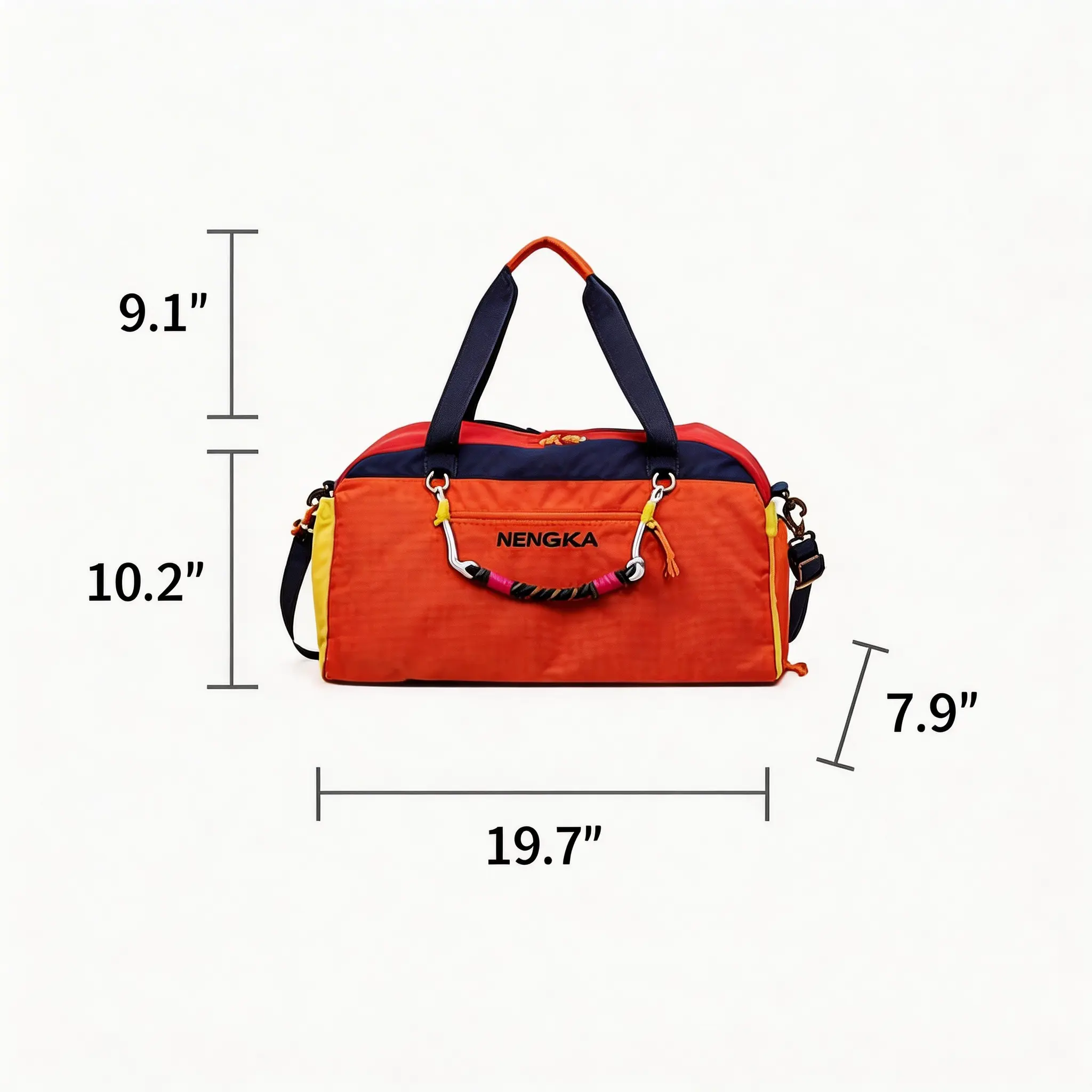 Elevate your travel style with this versatile bag. Perfect for women, it combines fashion with functionality. The color blocking design adds a trendy touch to your outfit. Ideal for sports, yoga, and fitness, it keeps your essentials organized. This bag is a must-have for your active lifestyle.