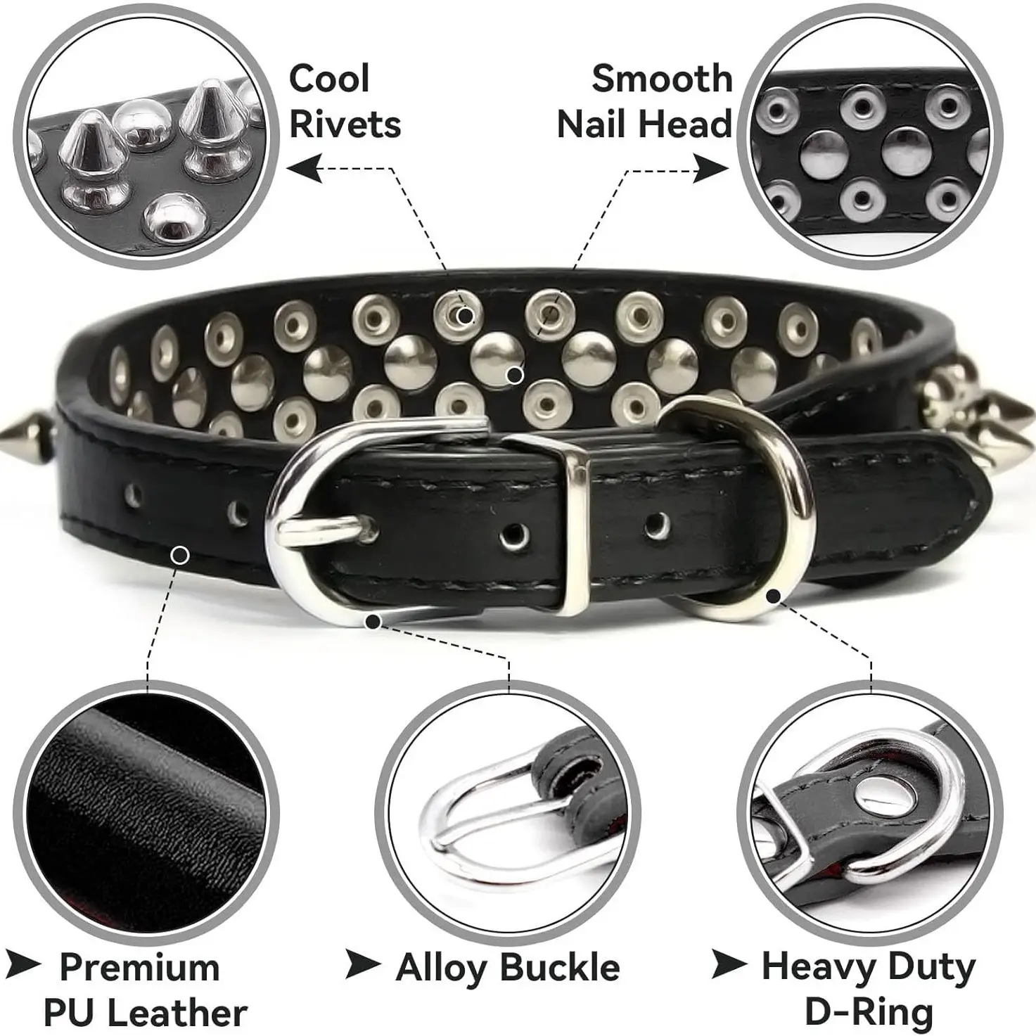 Dog Collar, Studded Anti-Bite Punk Pet Collar for Medium & Large Dogs, Durable Adjustable Heavy Duty Pet Neckwear, Trendy Gothic Accessories for Pitbull German Shepherd