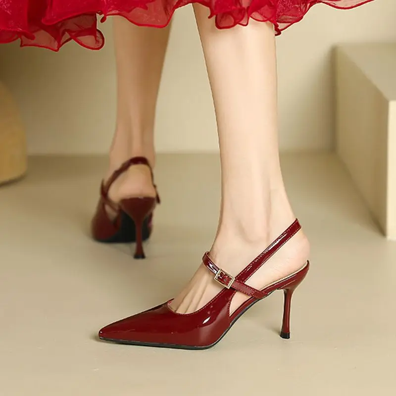 ·Elegant French-style slip-on sandals with open back and stiletto heel—perfect for plus-size women (sizes 34-42)