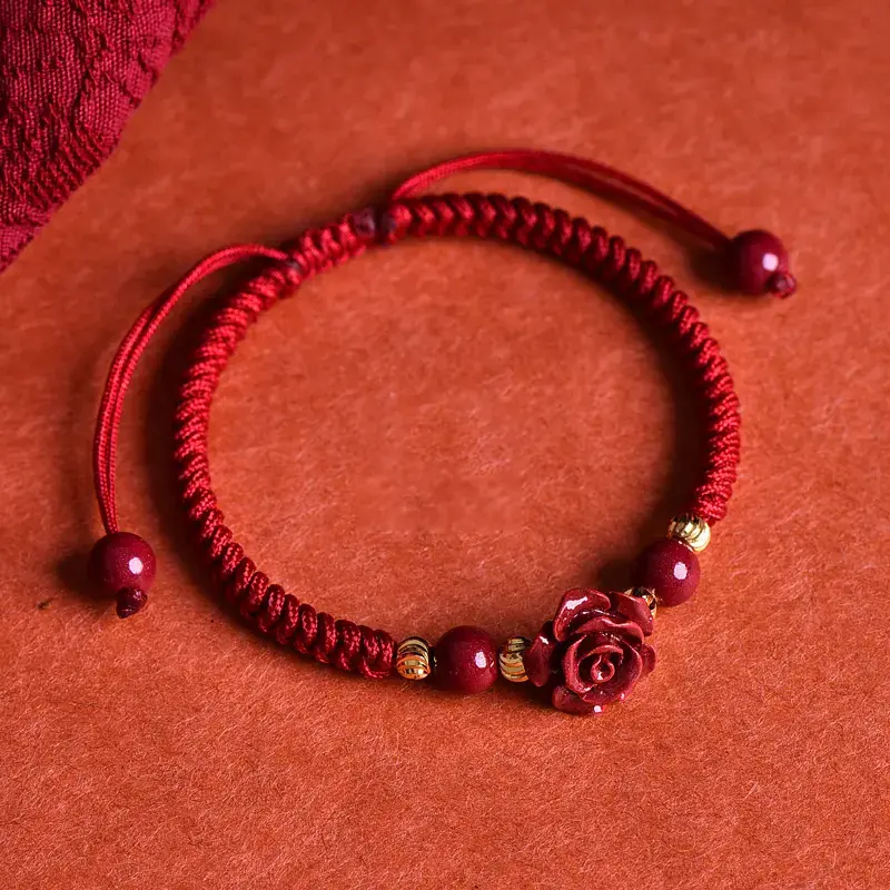 Cinnabar Rose Red String Bracelet with 18K Gold Accents for Love Prosperity and Protection Elegant Design Perfect for Any Occasion