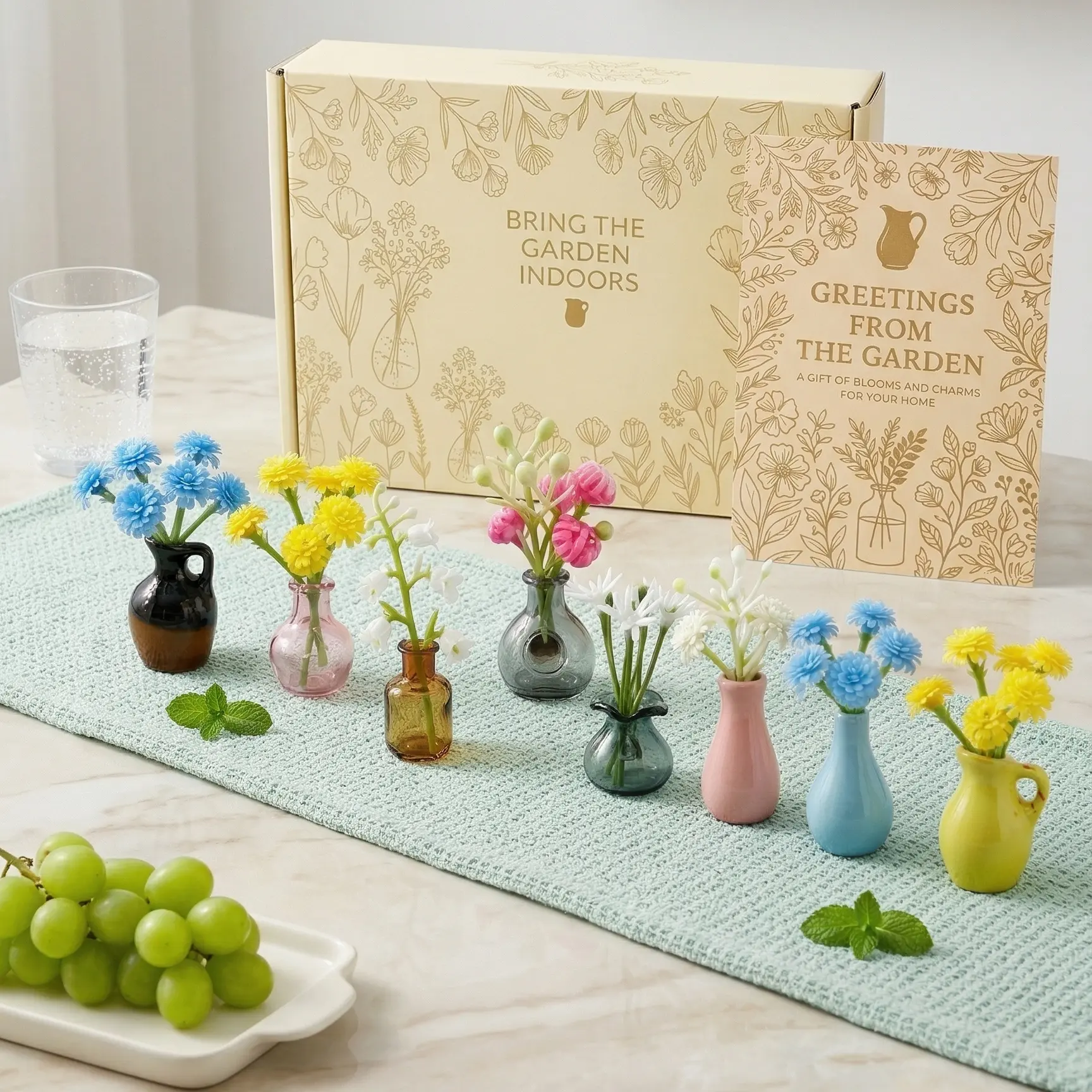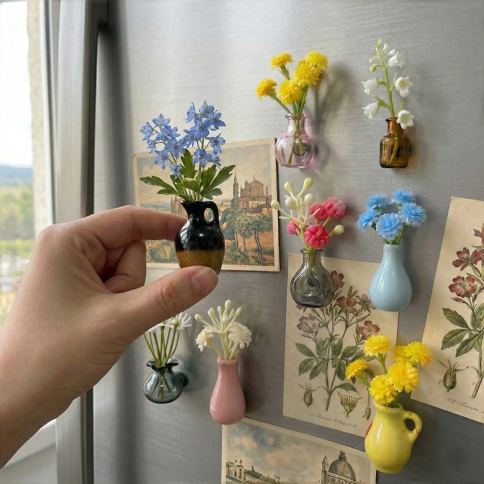 Tiny Vases, Big Joy! 8-Pc Mini Vase Fridge Magnet Set with FREE Flowers!