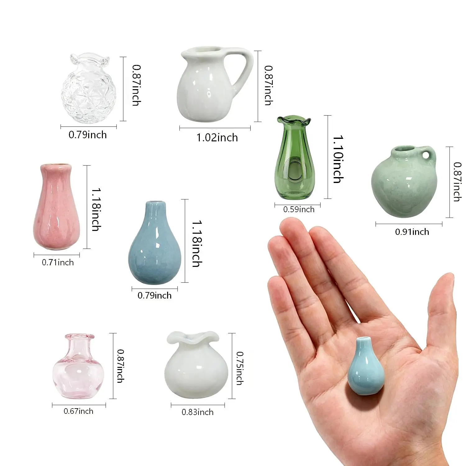 8 Unique Styles: You get a set of 8 ADORABLE mini vases (6 Ceramic + 2 Glass) in different cheerful shapes and colors.