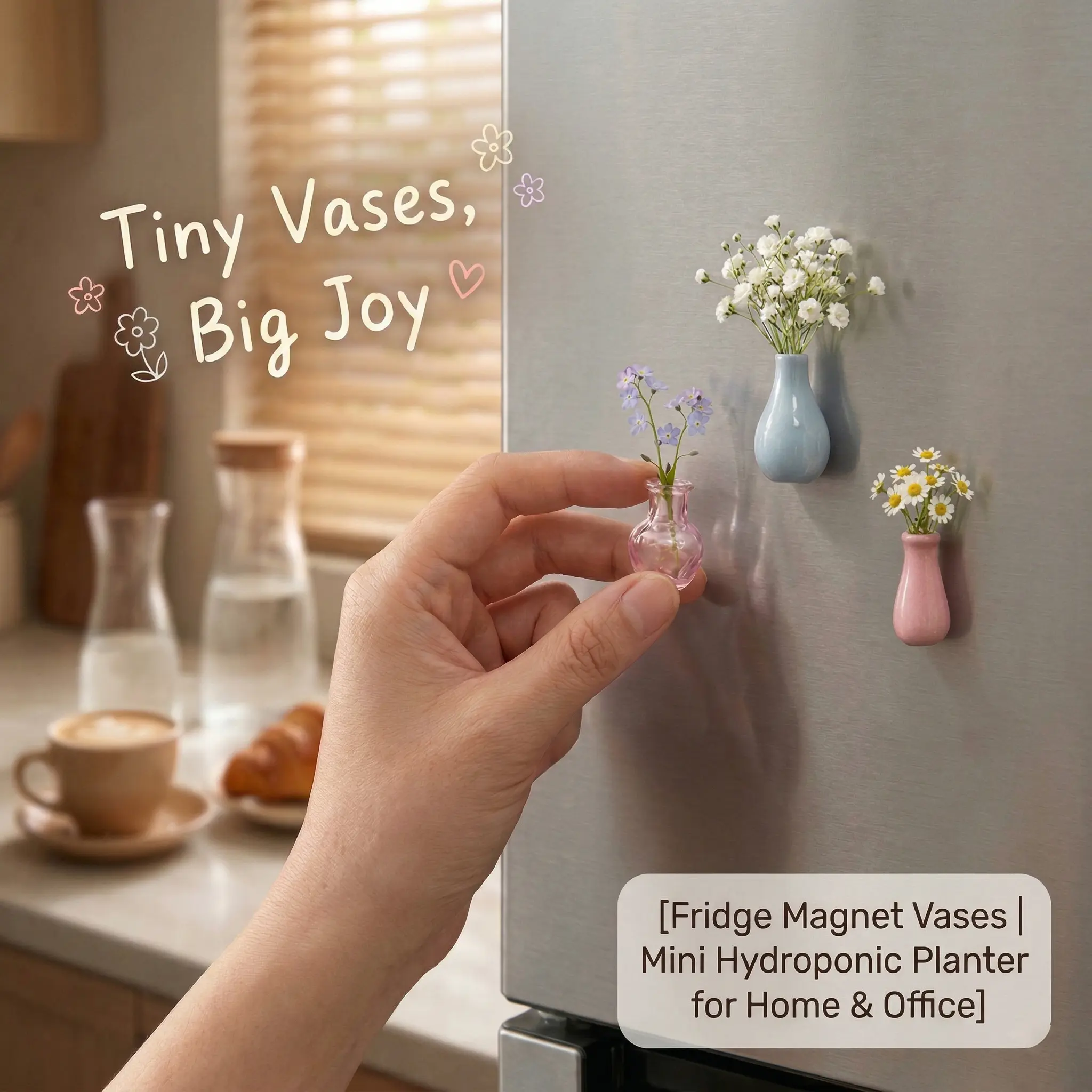 Instant Kitchen Aesthetic! These super cute, miniature ceramic & glass vases are the perfect way to bring a touch of nature and a lot of happy vibes to your fridge, office, or locker.