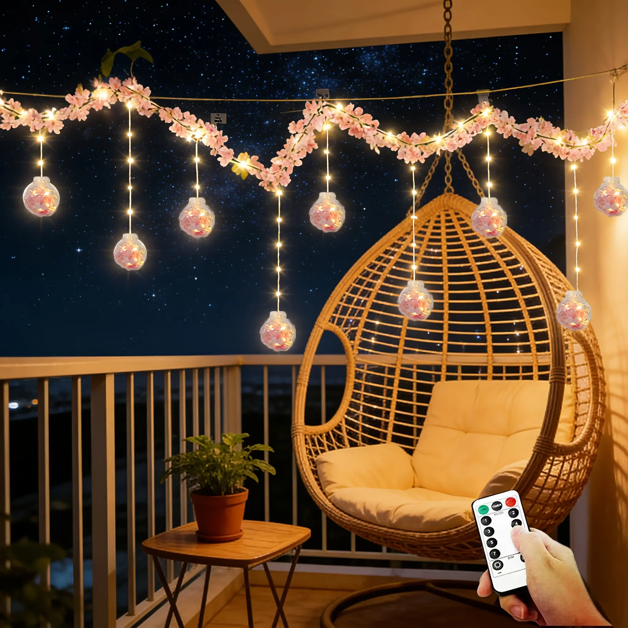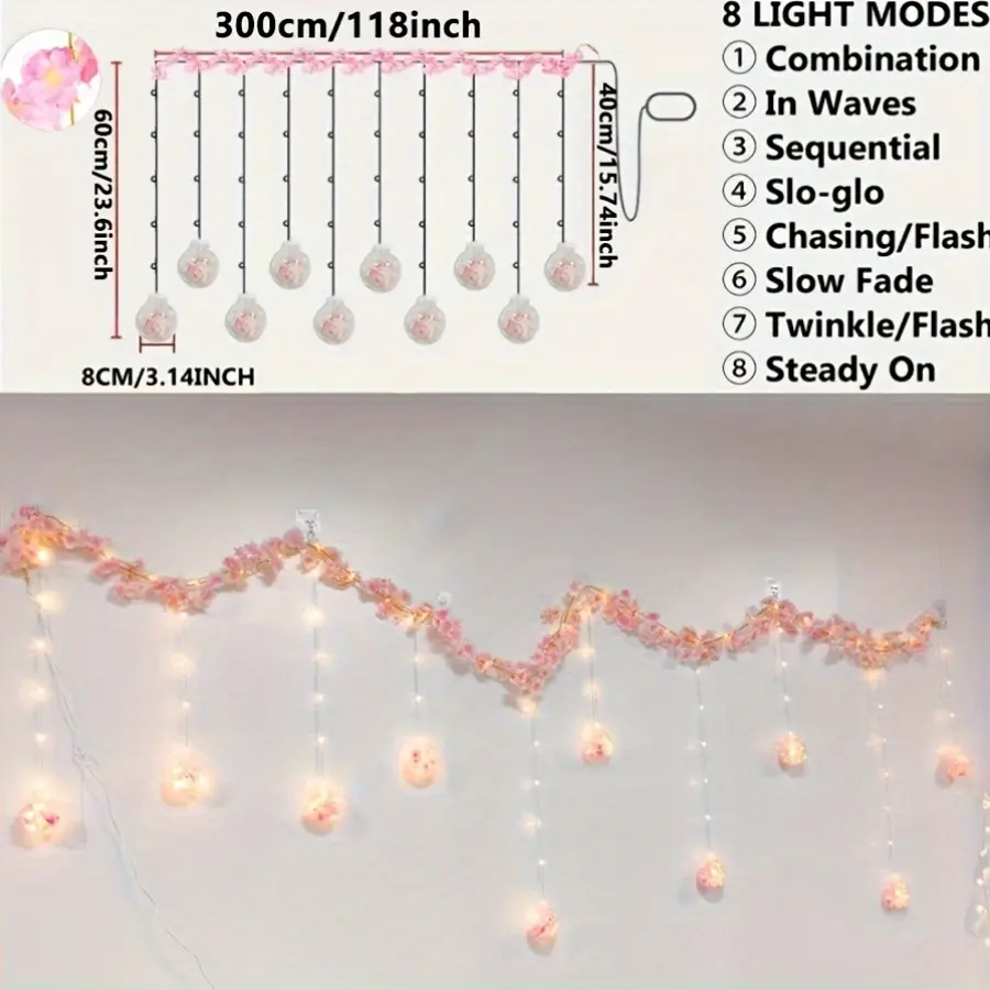 Inspired by spring cherry blossoms, this wish ball curtain light blends romance and light, perfect for cozy ambiance. With 118 inches (3 meters) length, it adapts to bedrooms, living rooms, and balconies. Decorate headboard walls, bay windows, or set festival moods. It elevates your space's aesthetic instantly.