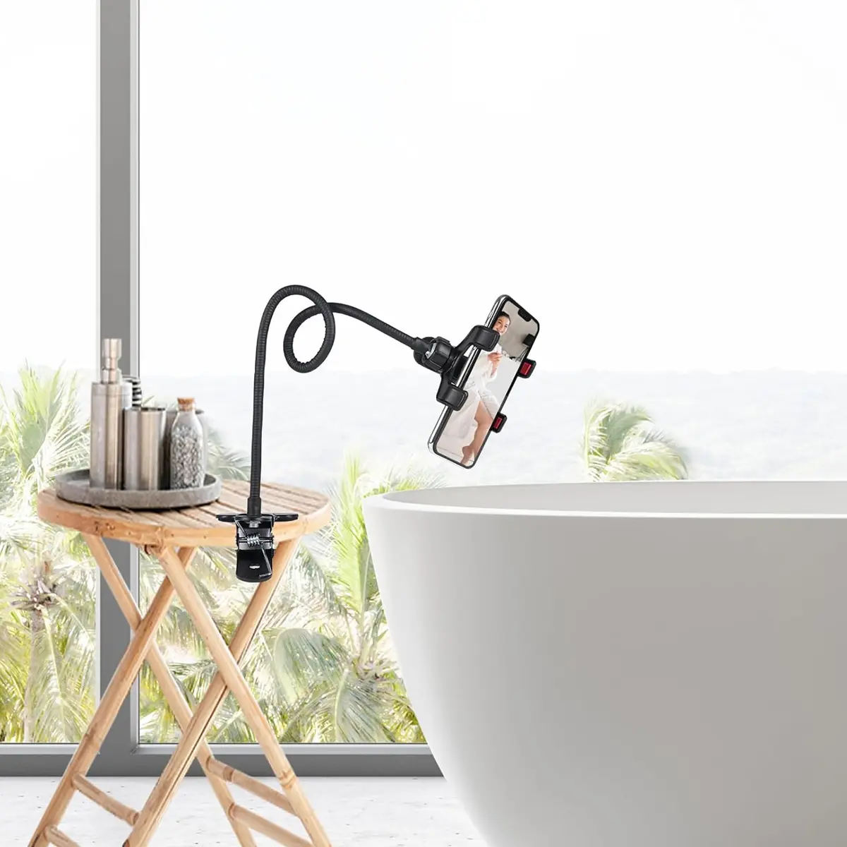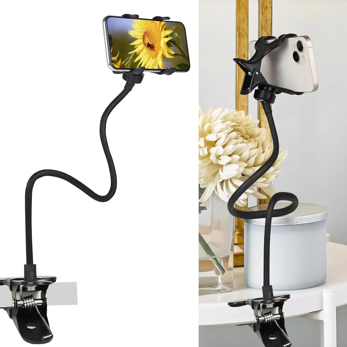 Gooseneck Bed Phone Holder, Flexible Long Arm Phone Mount for Desk, Clip Bracket Clamp Stand, iPhone Stand, Mobile Cell Phone Stand Document Camera Nintendo Switch (Black)