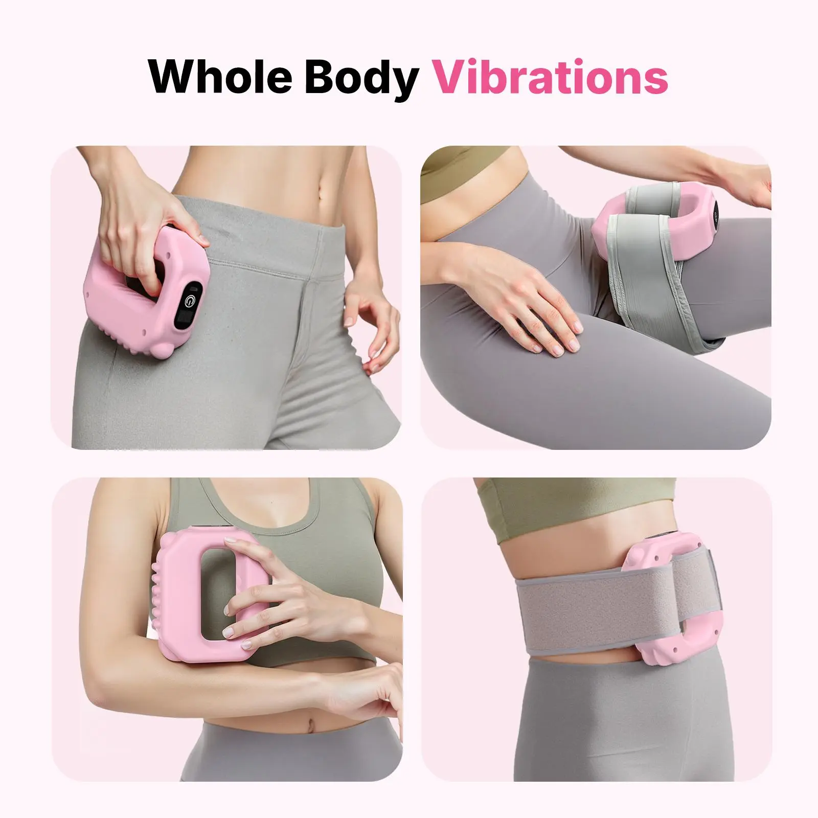 Merach Portable Vibrations Cordless Fascial Ring for Whole Body - 6 Speed Levels Neck & Shoulder Muscle Relief Deep Tissue Percussive Massager for Relaxation Pink & Gray Design