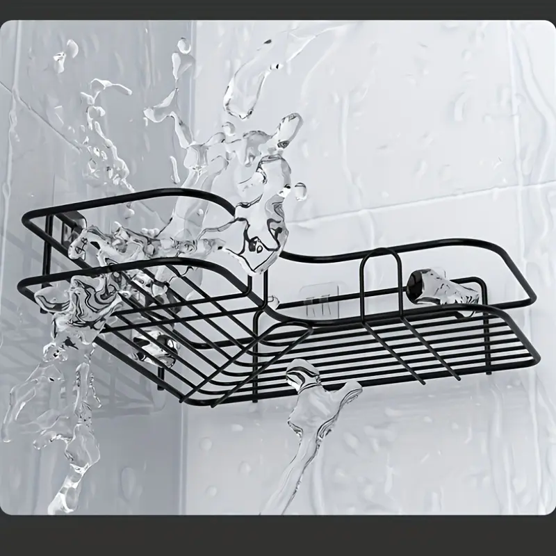 1-piece anti-rust stainless steel corner shower shelf - wall-mounted bathroom storage rack, suitable for shampoo, toner, and cosmetics, multi-compartment design saves space, black finish suitable for modern bathrooms, bathroom decor and accessories
