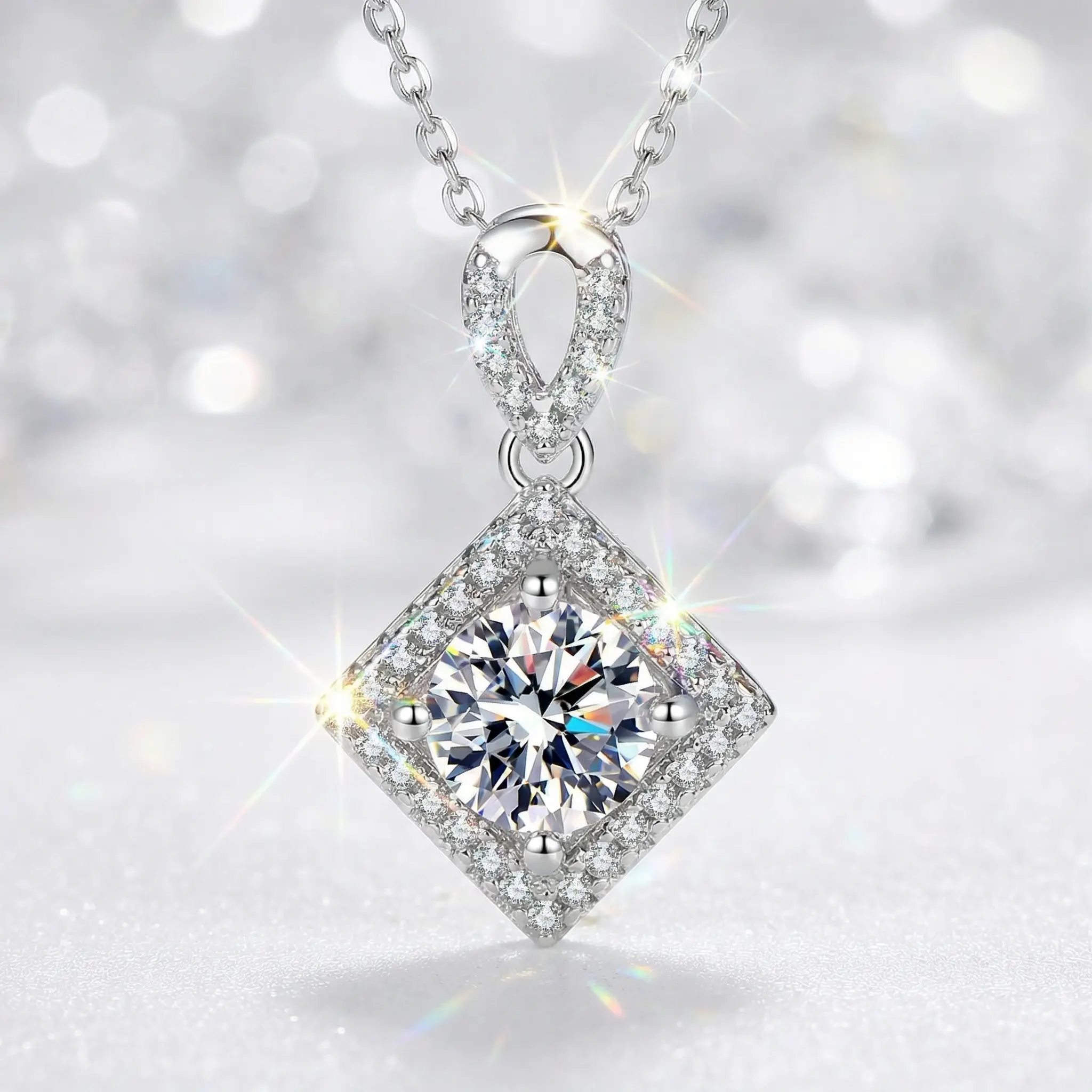 Luxury Moissanite Pendant Necklace in 925 Sterling Silver – Elegant, Timeless, High Brilliance Jewelry for Women”