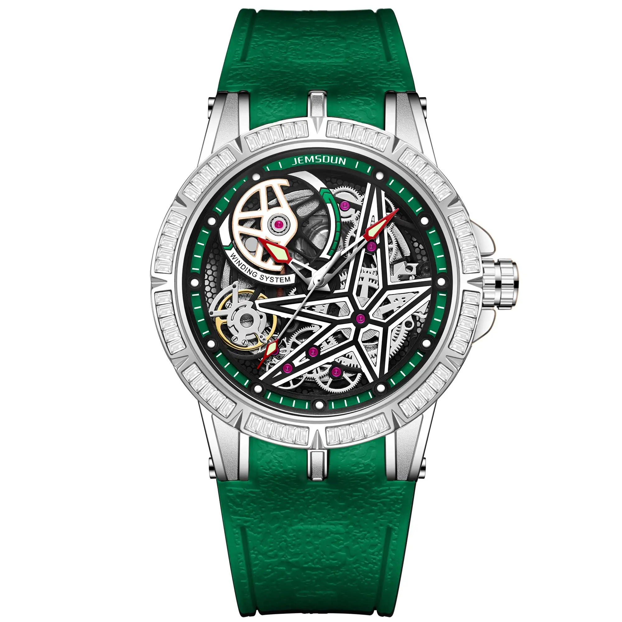 Star Skeleton Automatic Mechanical Watch with Diamond Bezel