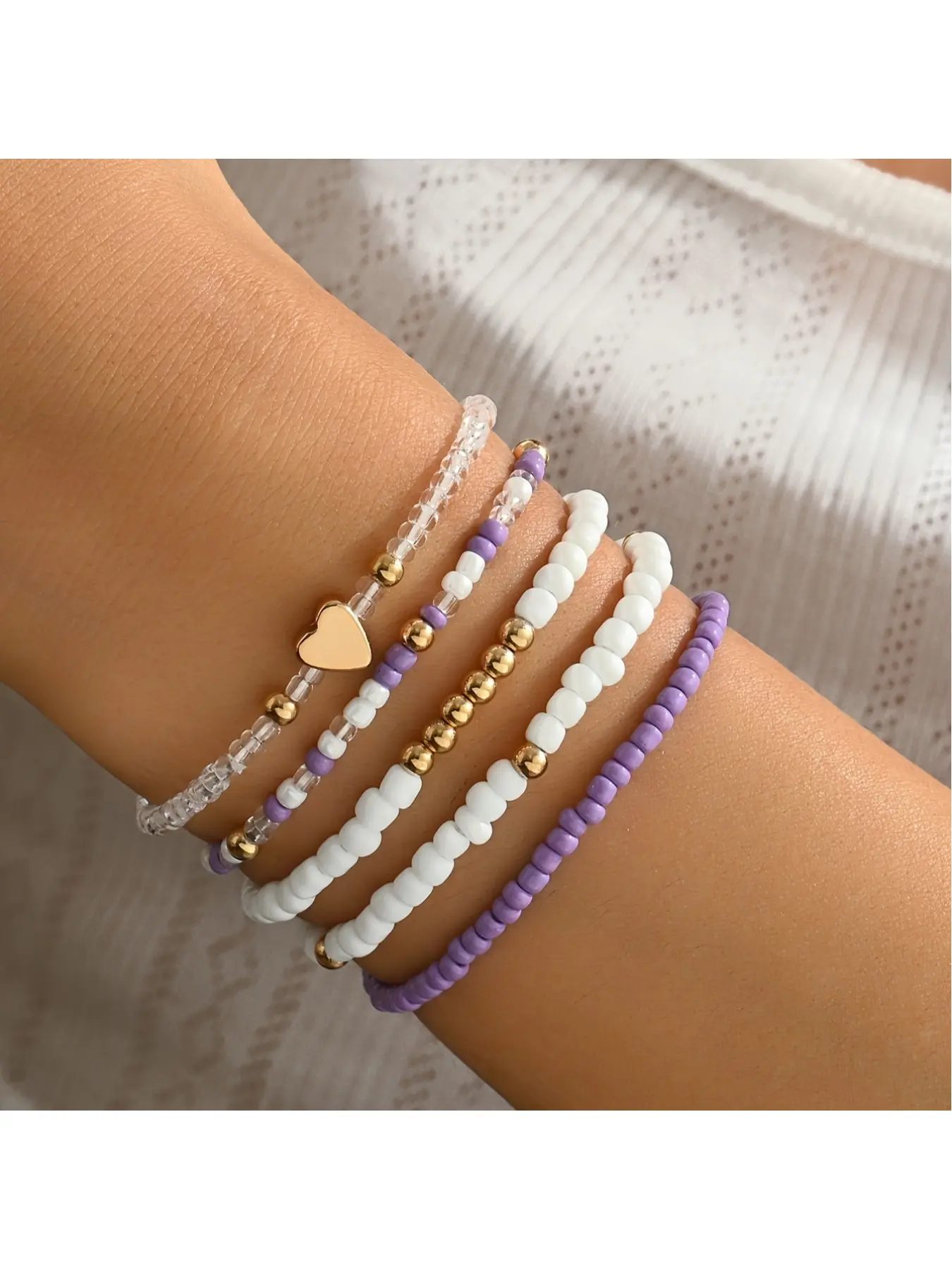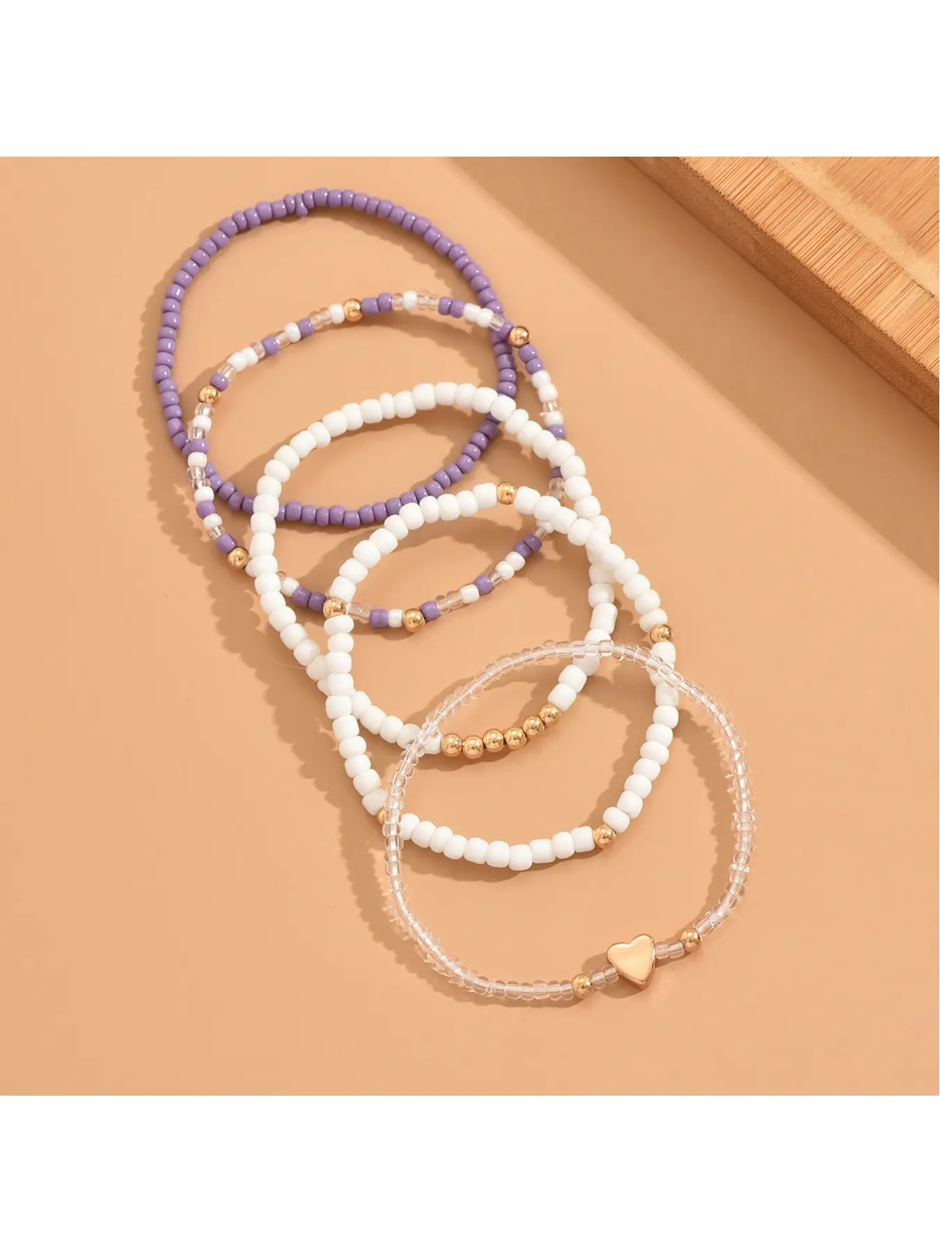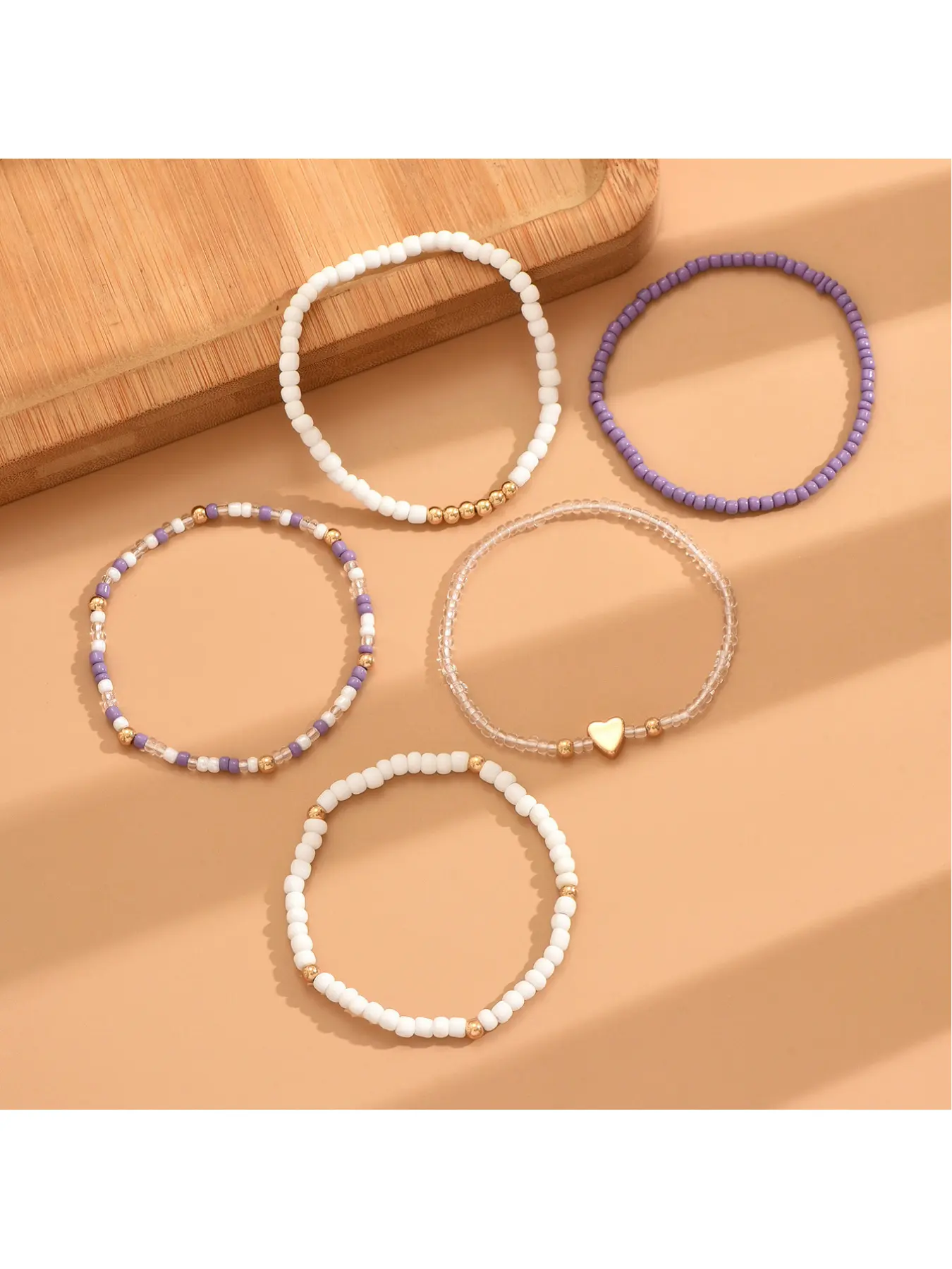 Fashion Metal Heart Beads Bracelet with Multi-color Youth Style Five-Set String Necklace for Women