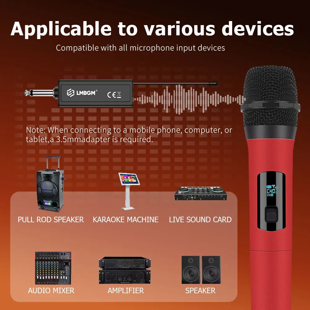 LMBGM Dynamic Wireless Microphone, Leather-Touch Grip & Anti-Howling Clear Sound, Plug & Play 30m Stable Transmission, With LCD Display Mic & 6.35mm Receiver, Perfect for Home KTV, PA Speakers, DJ Mixers, Parties & Events.