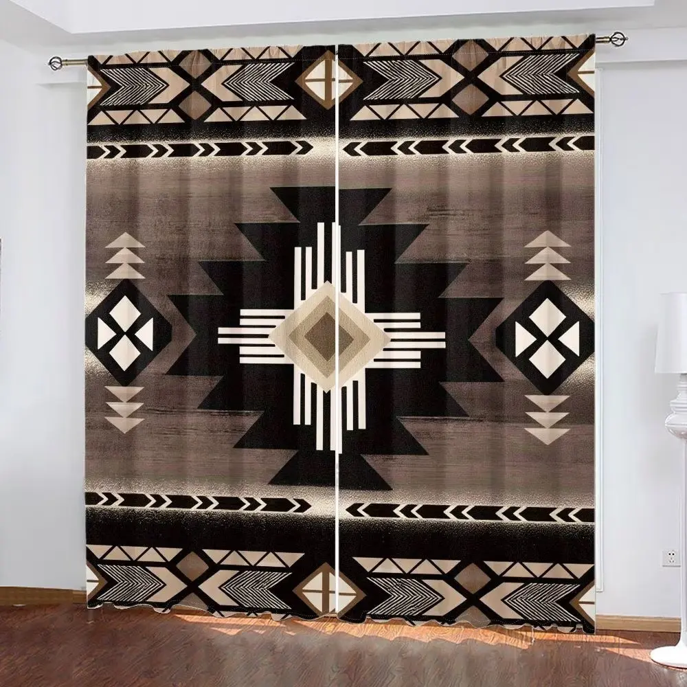 2 pieces of American tribal art geometric pattern printed curtains, made of polyester with semi-transparent texture, machine washable, suitable for bedrooms, living rooms and home decoration curtains