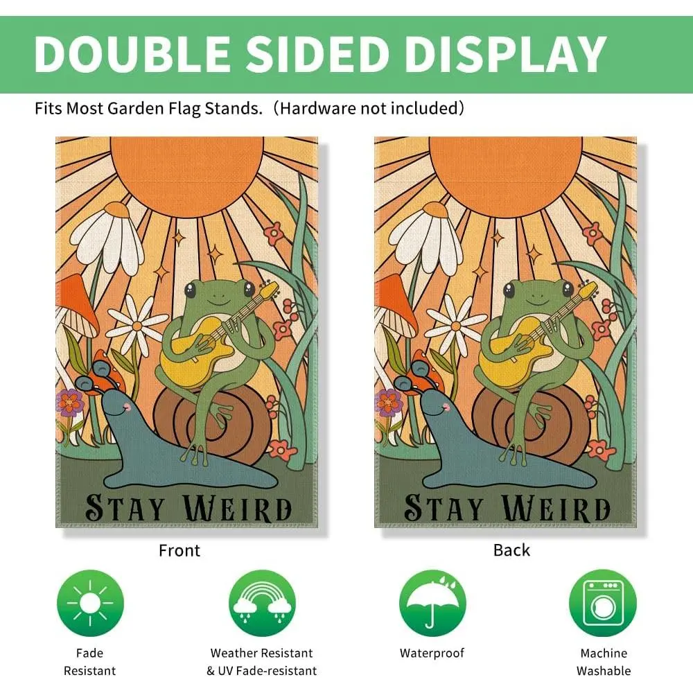 Our adorable mini 12"x18" garden flags bring instant charm to your yard, porch, or garden! Crafted from durable, weatherproof polyester with UV protection to withstand sun rain, suitable for all seasons. Show your personality and spread joy with a garden flag!