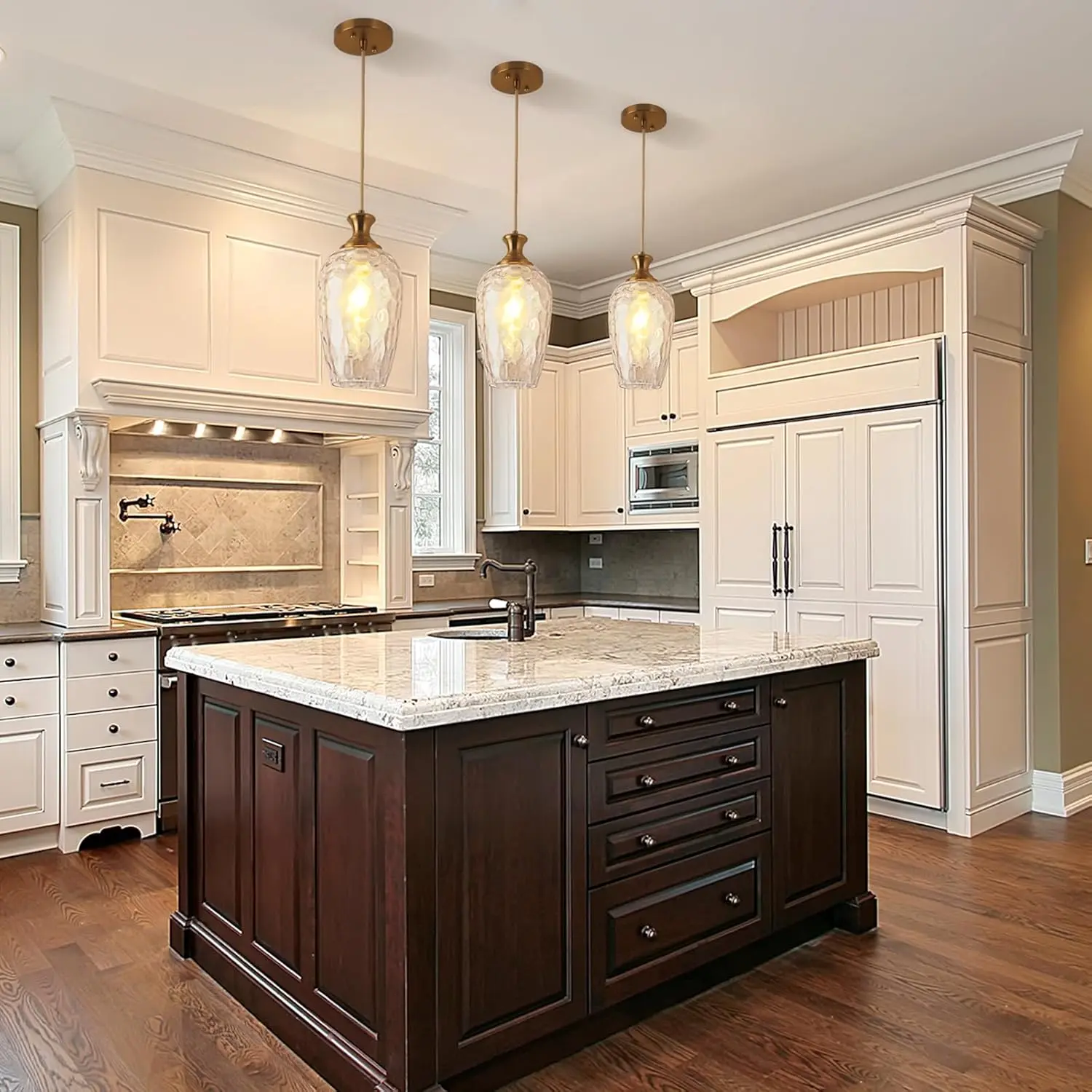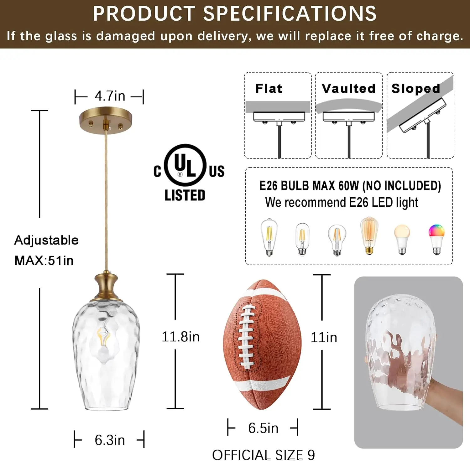 Glass Pendant Lights Kitchen, Clear Glass Hanging Light Fixtures Farmhouse Brass Gold Pendant Light for Kitchen Sink Dining Room