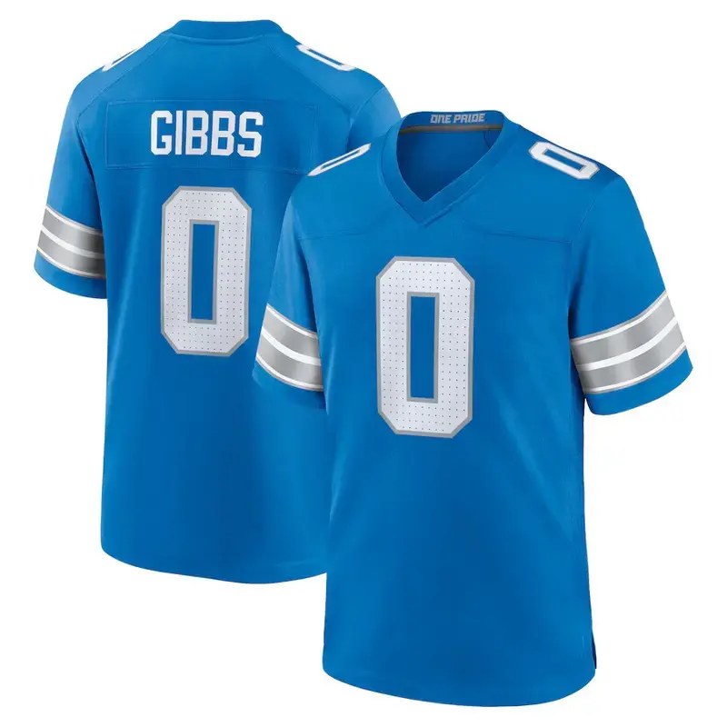 ·Design Details: The jersey features a blue, black, and white color scheme, representing the Detroit Gibbs 0 team. It's a game jersey, designed for both style and comfort.