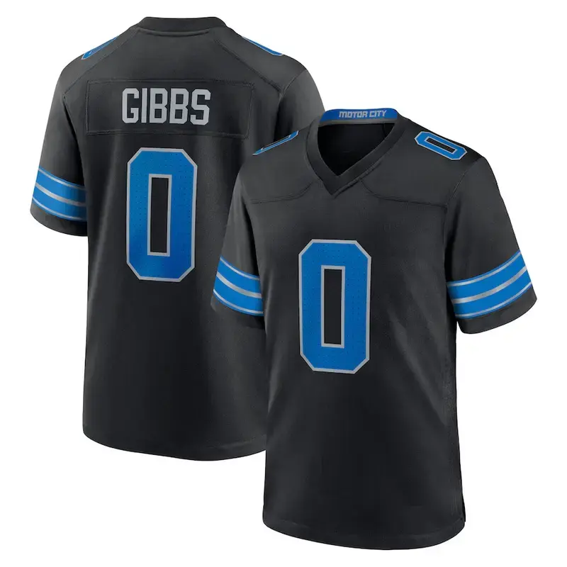 🏈 Detroit Gibbs 0 Blue/Black/White Football Player Game Jerseys