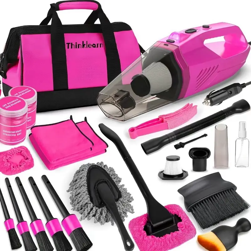 19pcs/Set Car Cleaning Wash Kit Interior Detailing Cleaner Kit With High Power Handheld Vacuum, Brush Set, Windshield Tool, Duster, Towels, Complete Car Care Tool