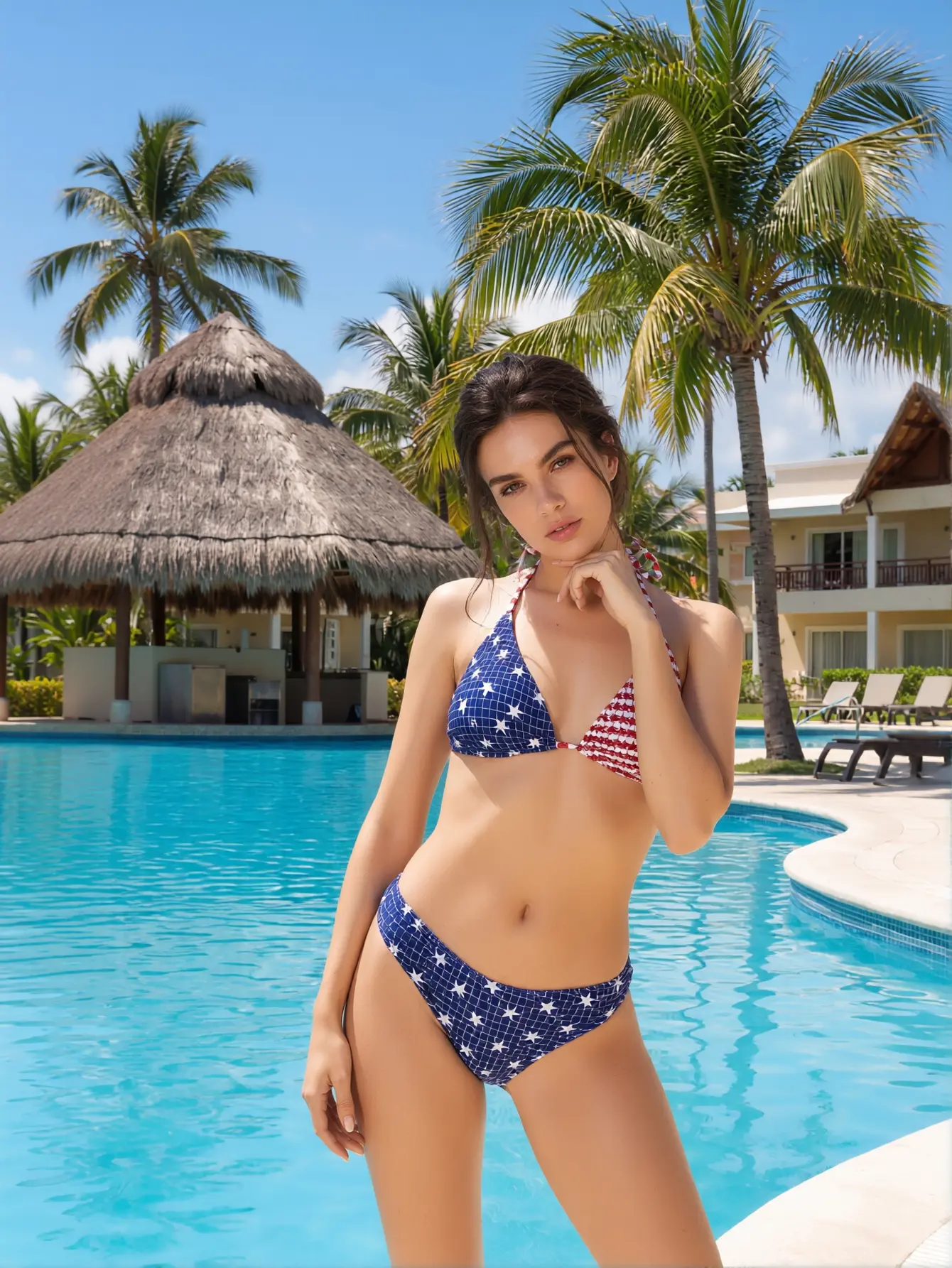 Stars & Stripes Print Halter Two Piece Bikini Set High Cut Tummy Control Swimwear for Women