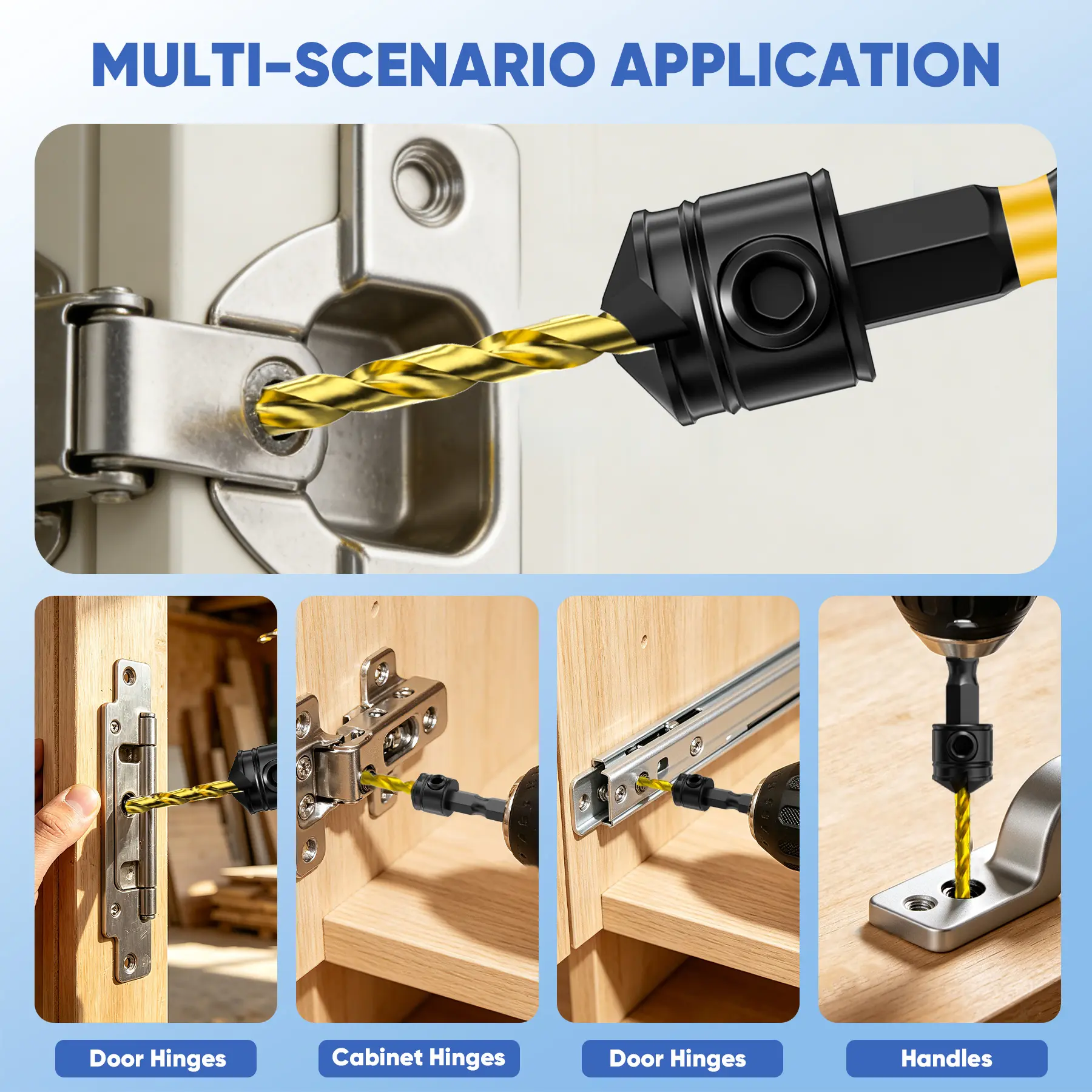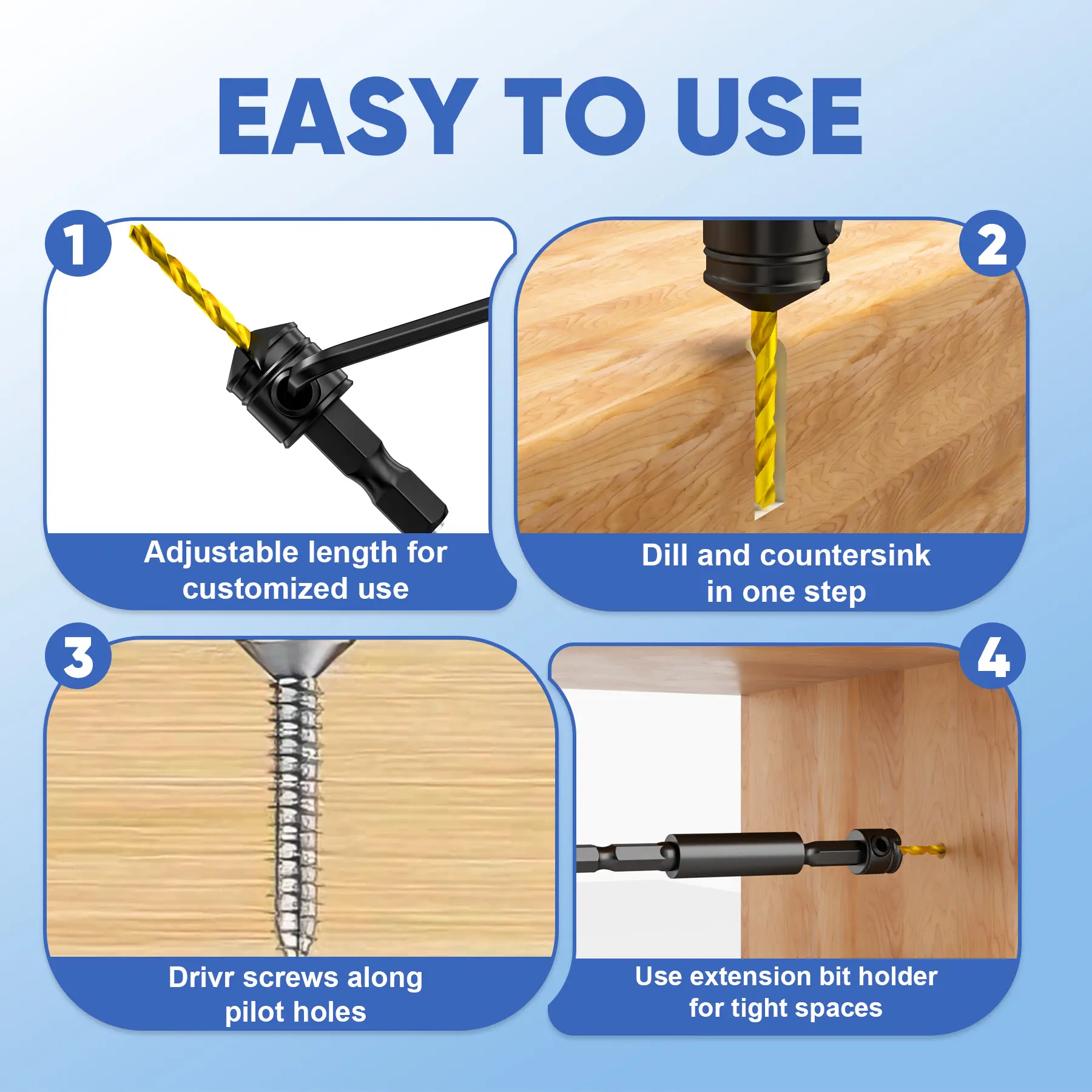 ·【Efficient and Clean Drilling】These drill bits with countersink are designed with dual-edge sharp blades and an 82 degree countersunk angle, providing quick and clean guide holes for tight screw fit on both cork and hardwood. A extension bit shaft that can be combined with tapered drill bits for wood in various ways to handle different types of screws.