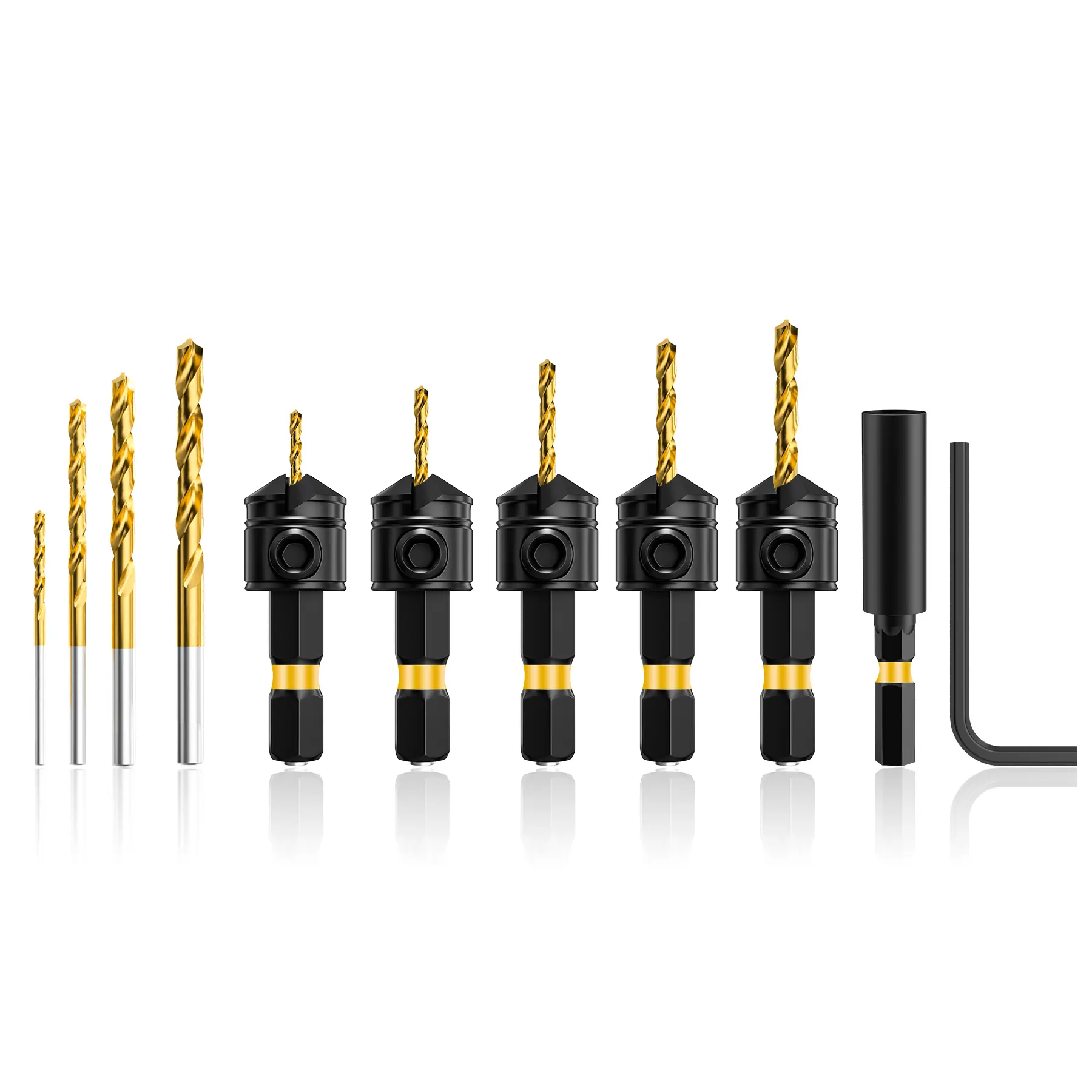 ·【Upgraded 12 Piece Set】The AKSC 12-piece countersink bit set covers all tool accessories required for the entire woodworking project. The countersink set includes 10 tapered drill bits 2pcs #4 (7/64"),2pcs #6 (9/64"), 2pcs #8 (11/64"), 2pcs #10 (3/16"), 2pcs #12 (7/32"), 1 hex wrench, 1 extension bit shaft, and 1 storage box.