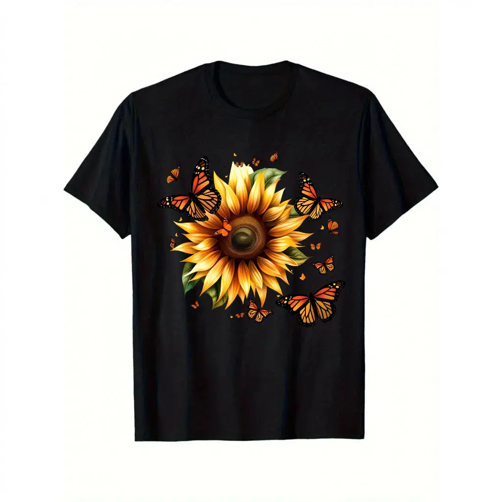 🌻 Sunflower and Butterfly Pattern T-shirt