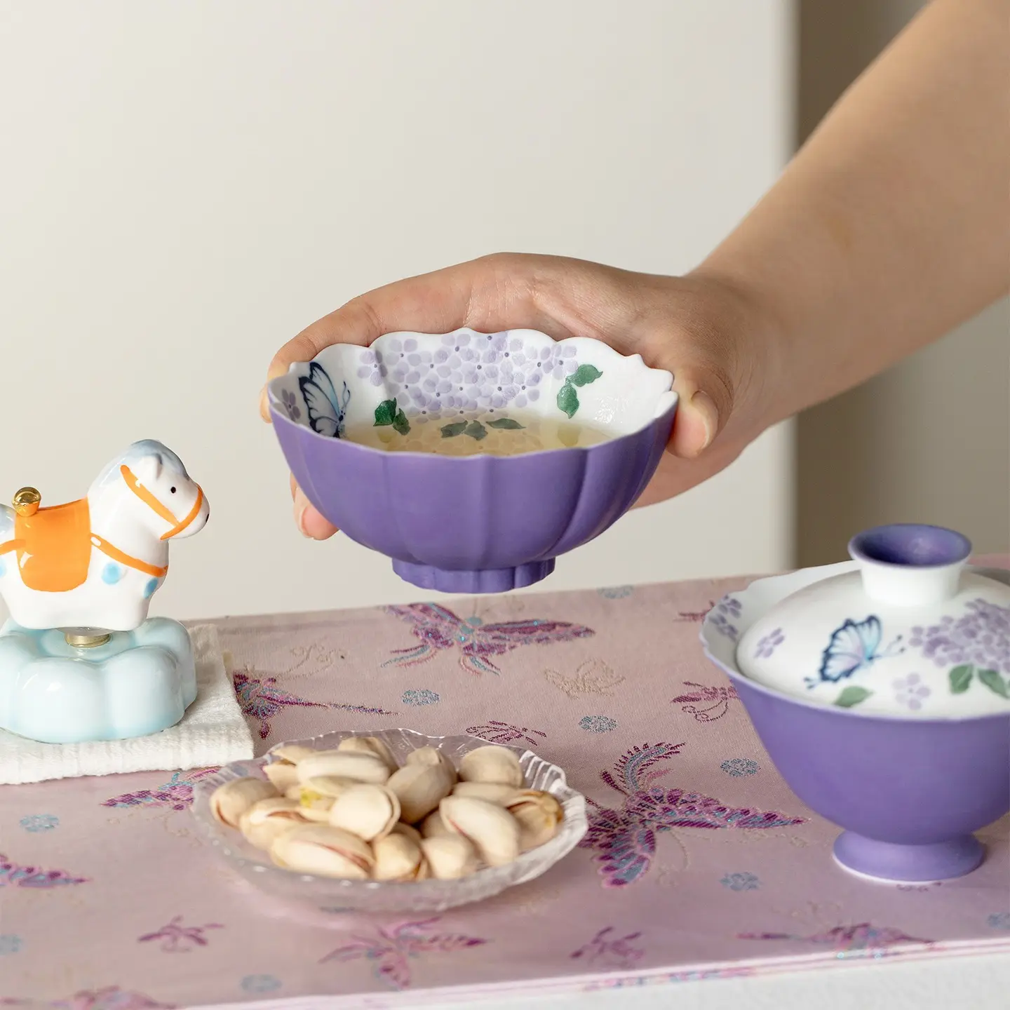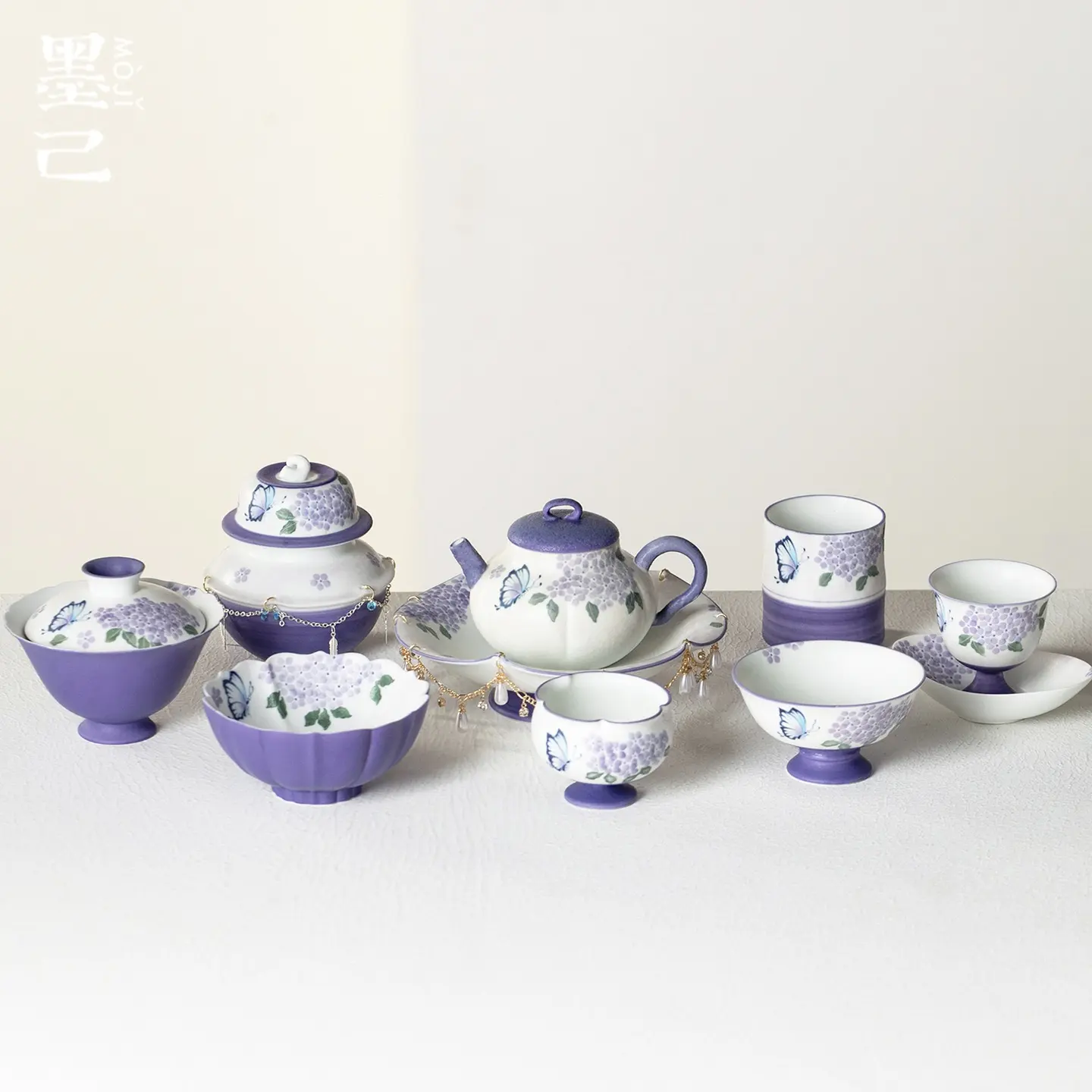 A433. Hand-Painted Purple Butterfly Ceramic Tea Set, 100 ml Kung Fu Teapot, Gaiwan Master Cup