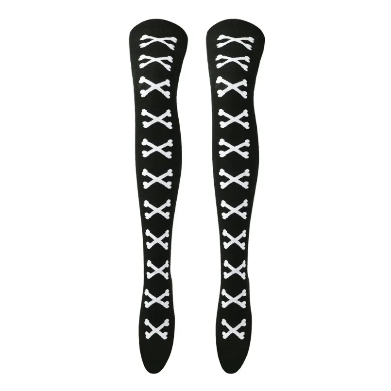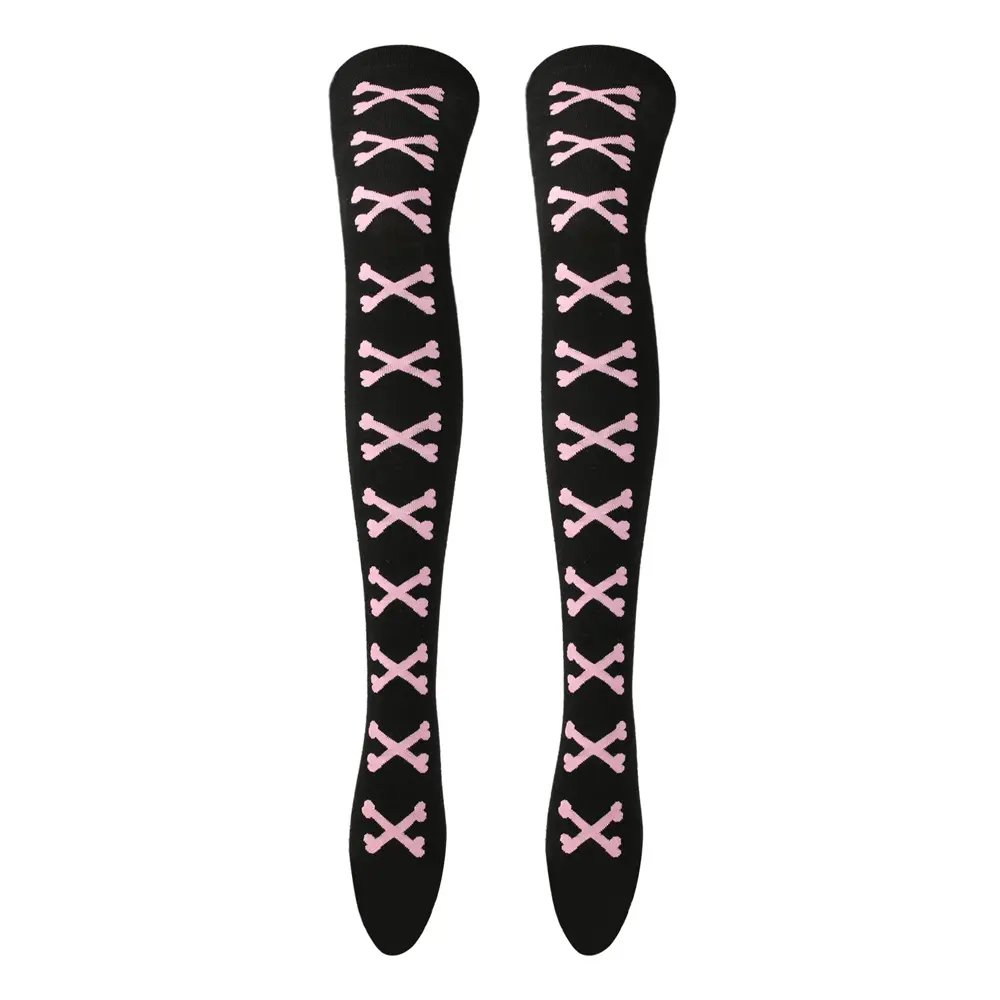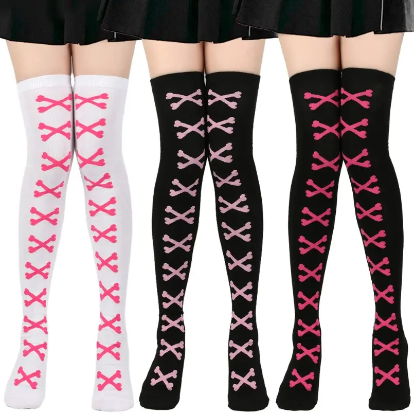 3 pairs Over-The-Knee Black White Pink Lolita Stockings