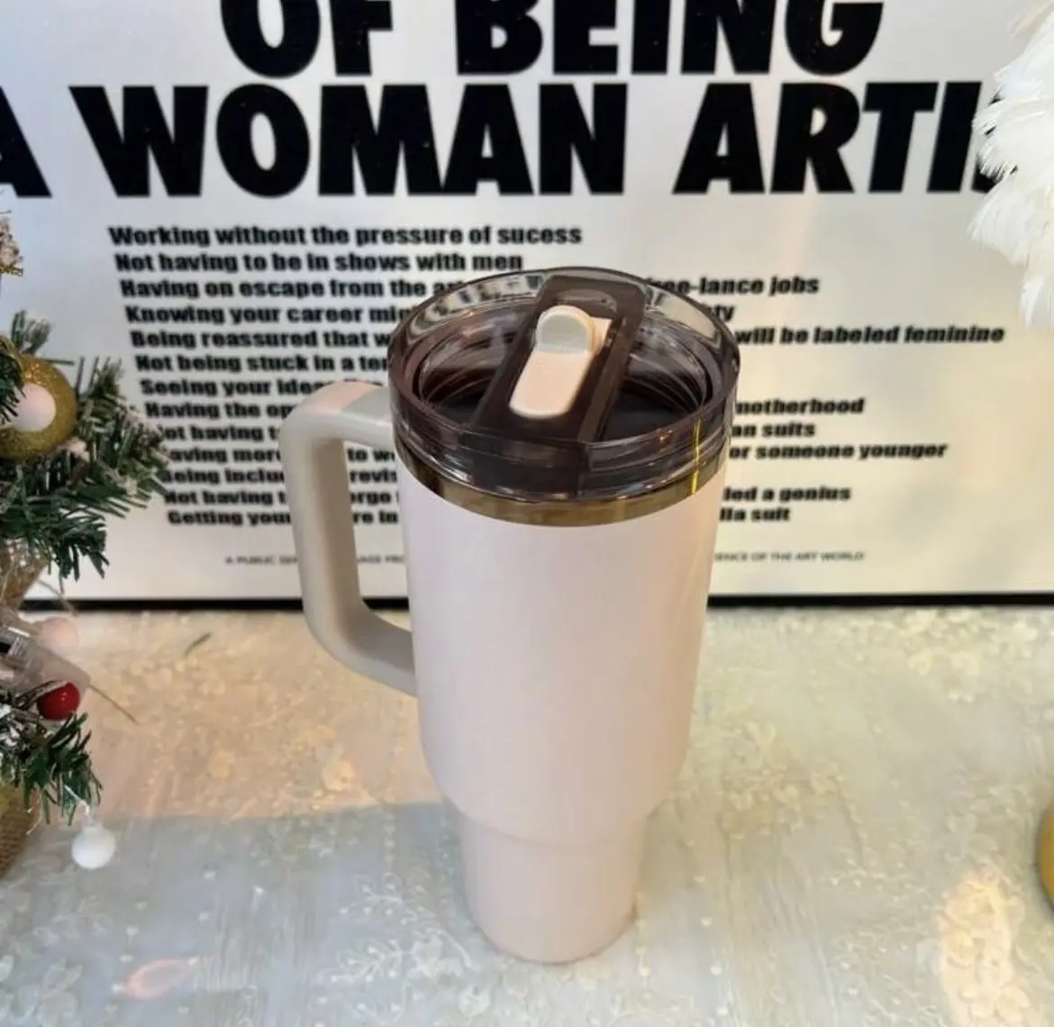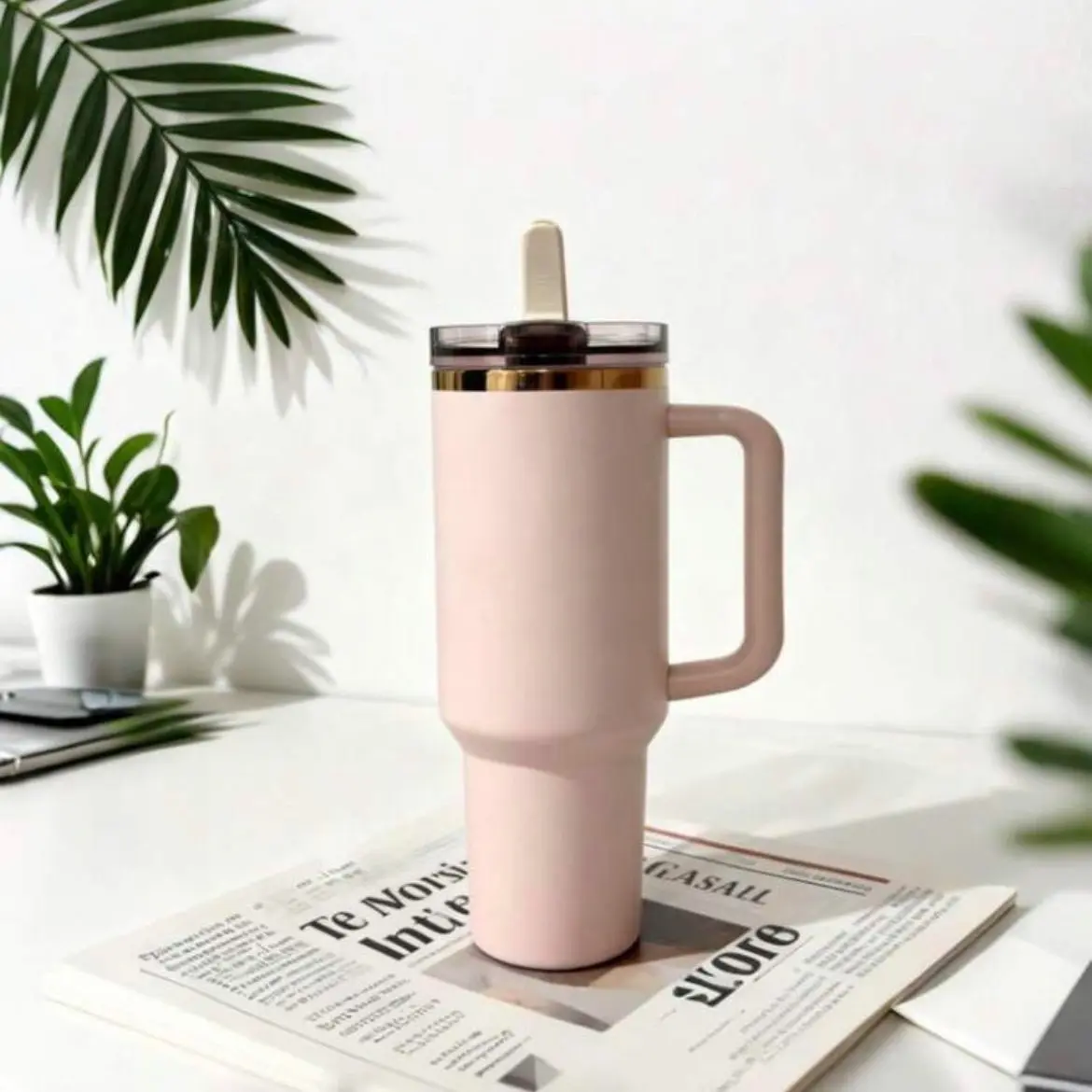 Stan 40oz Stainless Steel Insulated Tumbler With Stylish Double-V Line Design, Handle & Straw – Long-Lasting Hot & Cold Retention For Home, Office, Travel, And Car – Ideal Gift Choice Drinkware Flasks Mug Bottles Bottled Portable Water Bottles