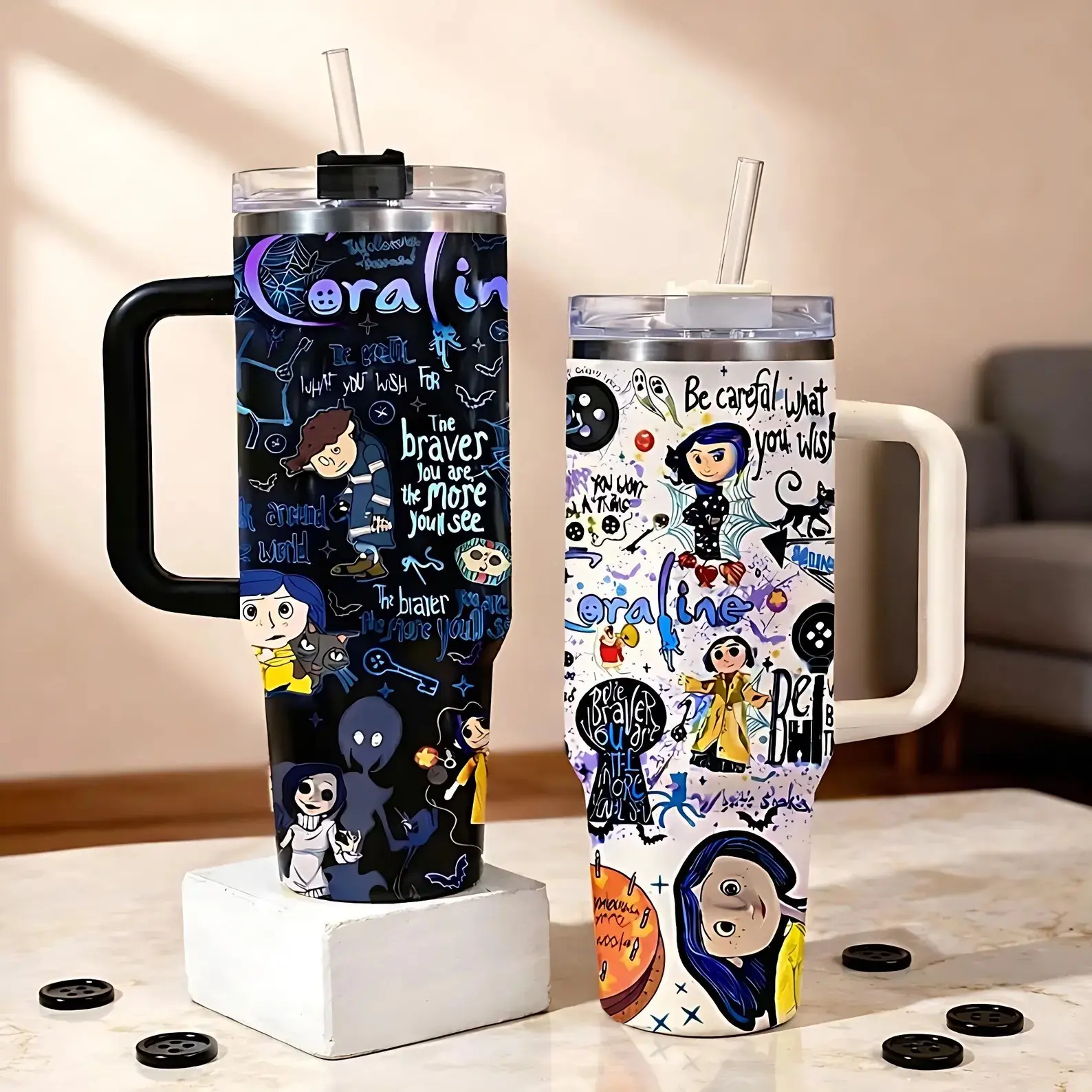 Sleep Token Inspired Gothic Tumbler 20oz & 40oz with Handle, Insulated Stainless Steel Tumbler with Handle & Straw, Dark Gothic Band Fan Travel Mug, Large Capacity Gift for Fans