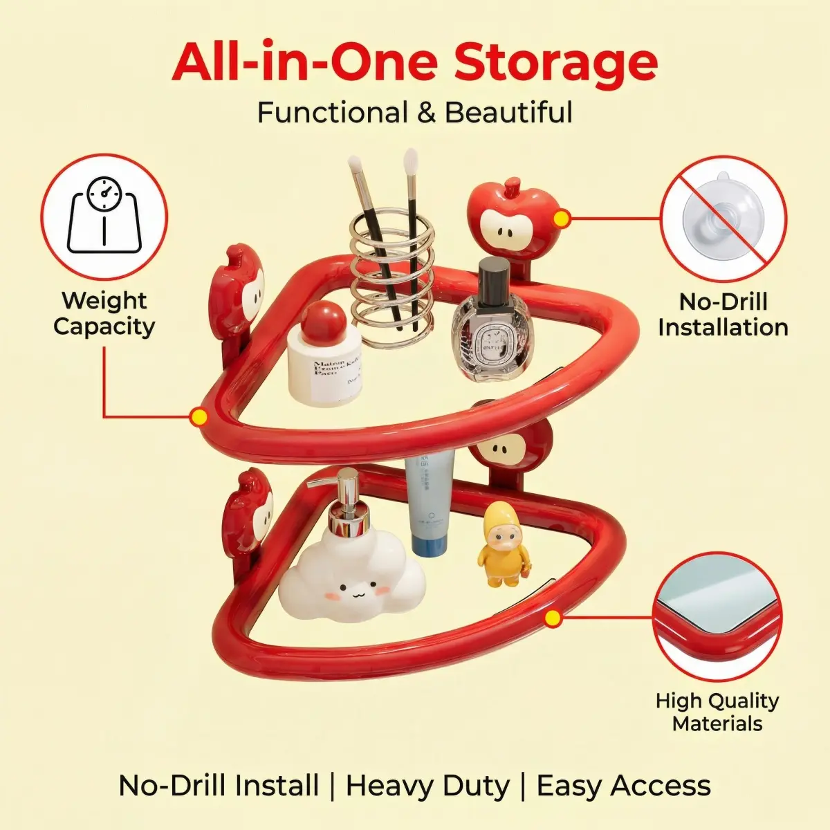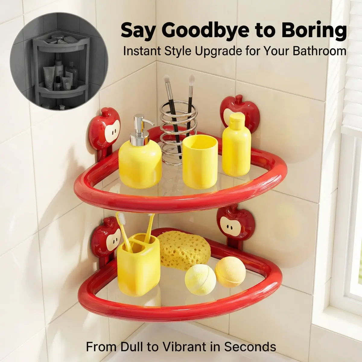 Say goodbye to dull aesthetics.Our unique apple-shaped corner caddy instantly adds a pop of cheerful color to your space.It’s not just a shelf; it’s a statement piece that brightens your mood every morning.🌈